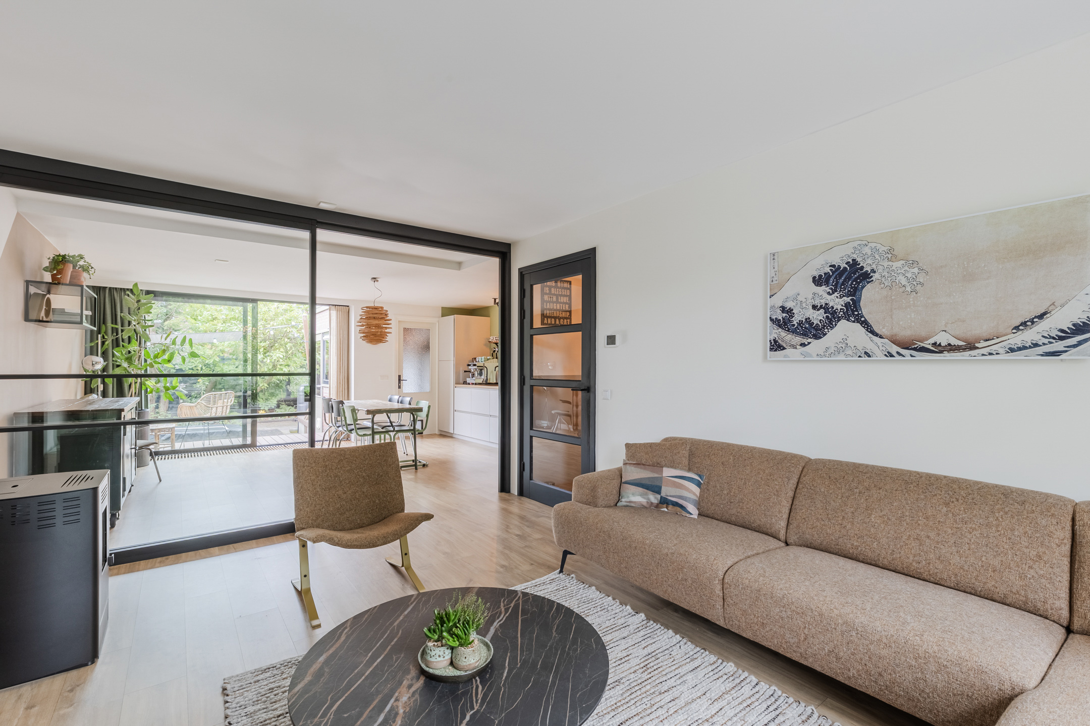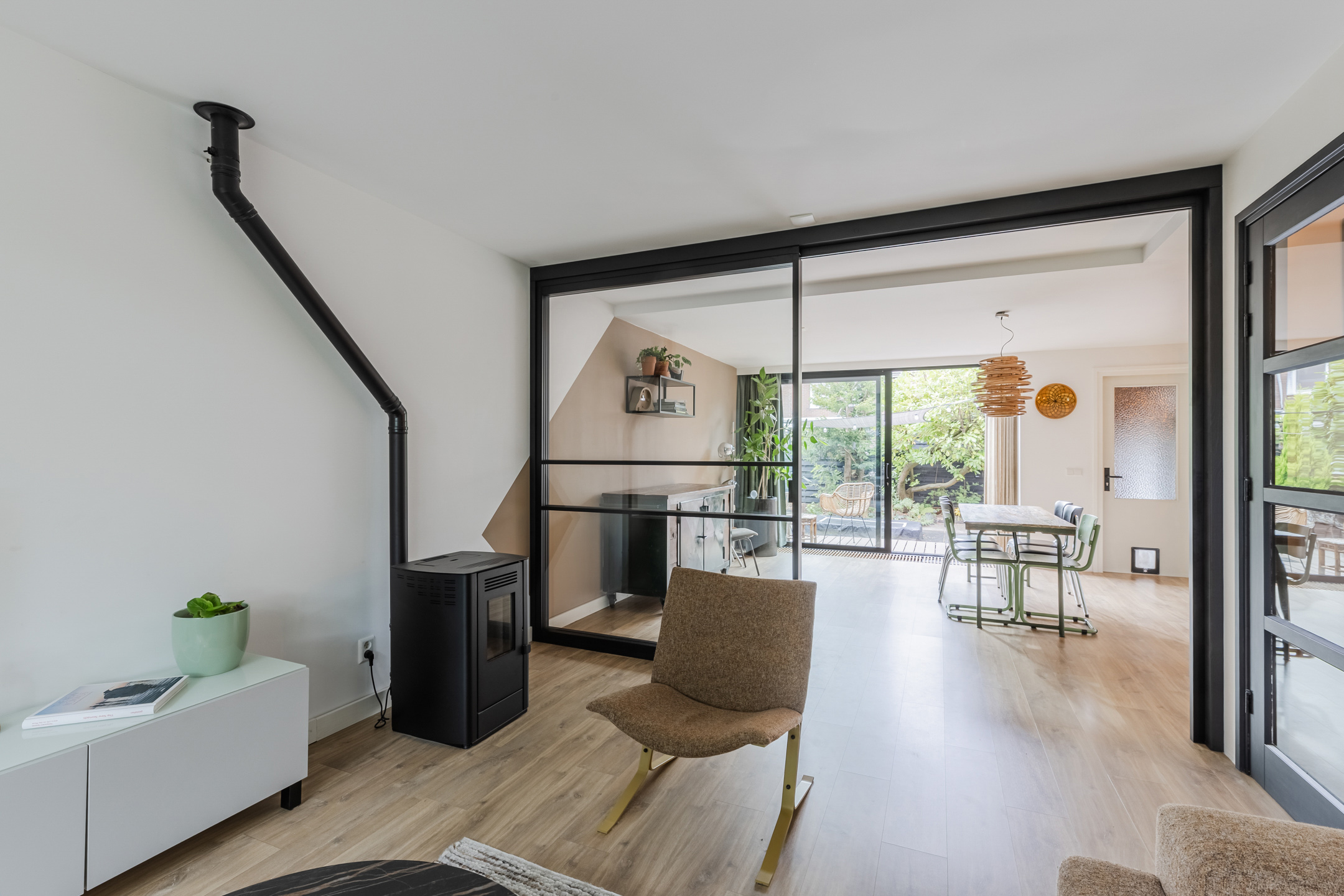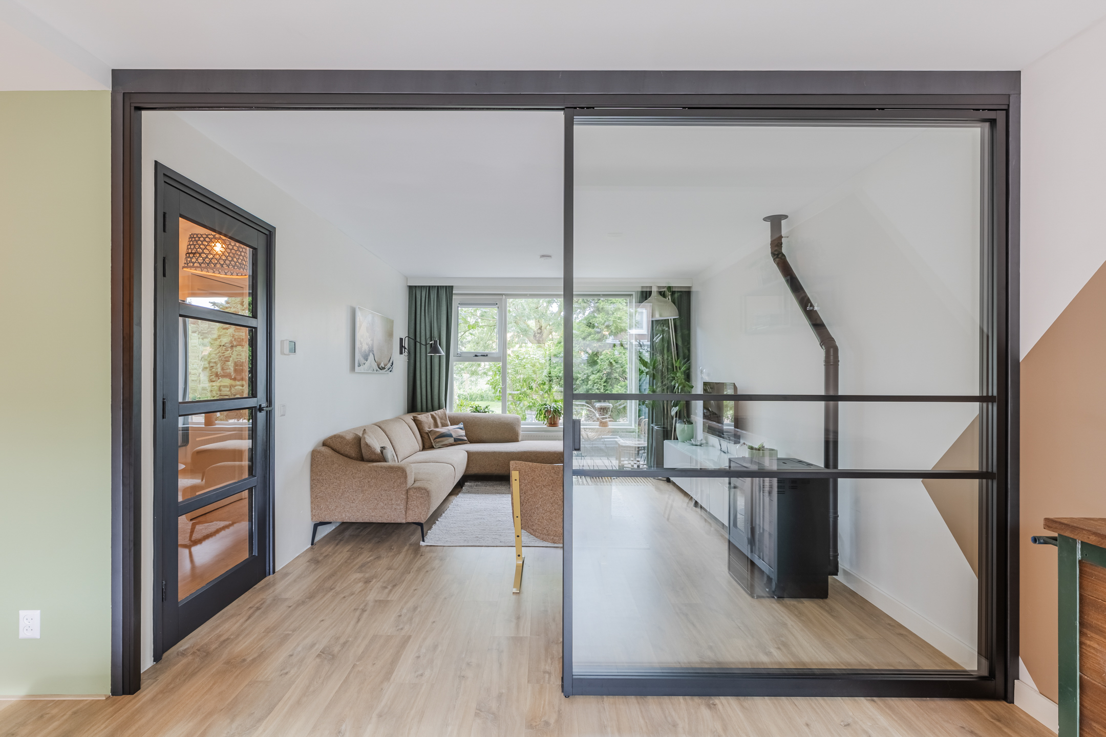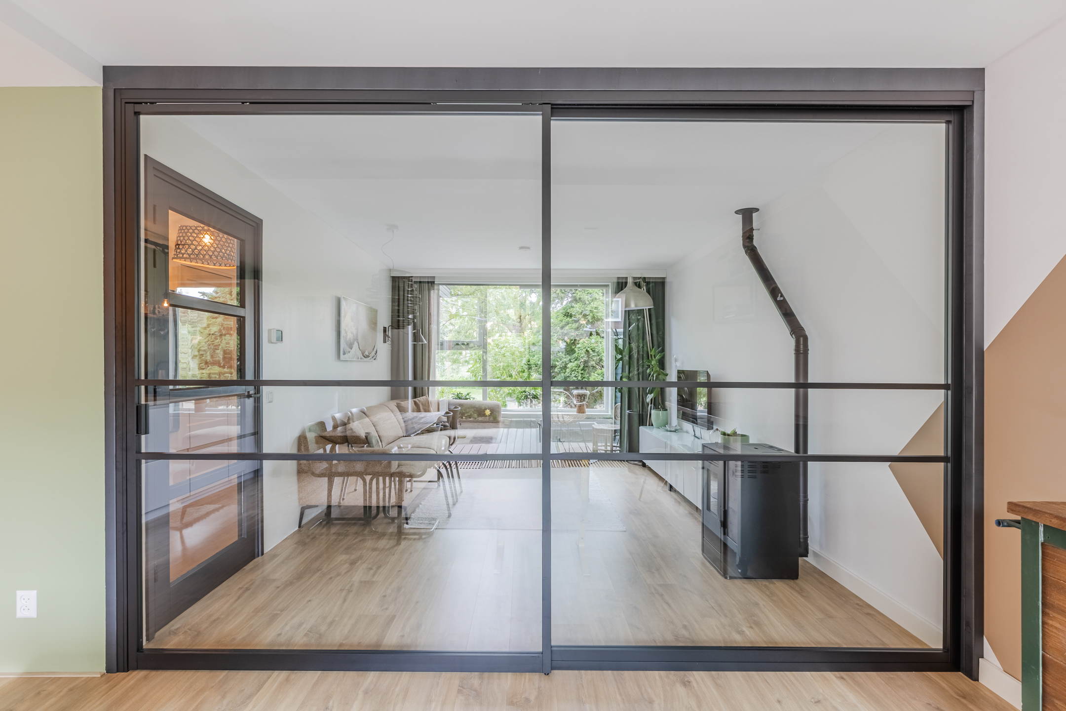 • Woon- en eetkamer gescheiden door een stijlvolle schuifpui van Gewoon Gers