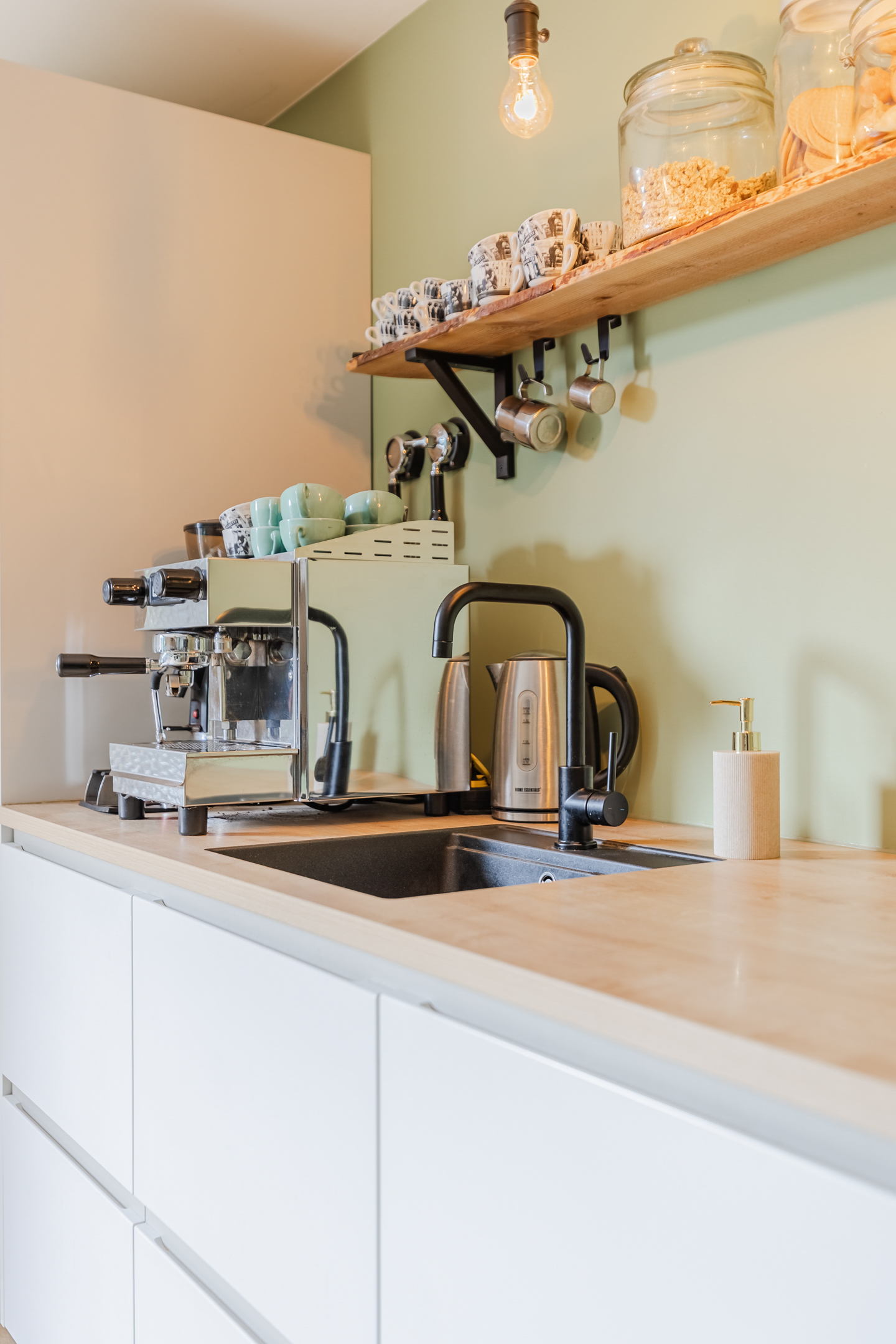 • Nette keuken met extra diep werkblad, diepe lades en inbouwapparatuur