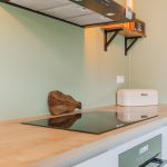 De ruime woonkamer is voorzien van een nette vloer en strak afgewerkte wanden. Dankzij de groter raampartij aan de voorzijde is deze ruimte heerlijk licht. De pelletkachel zorgt hier voor extra warmte en sfeer. De woon- en eetkamer worden van elkaar gescheiden door een grote, moderne schuifpui.