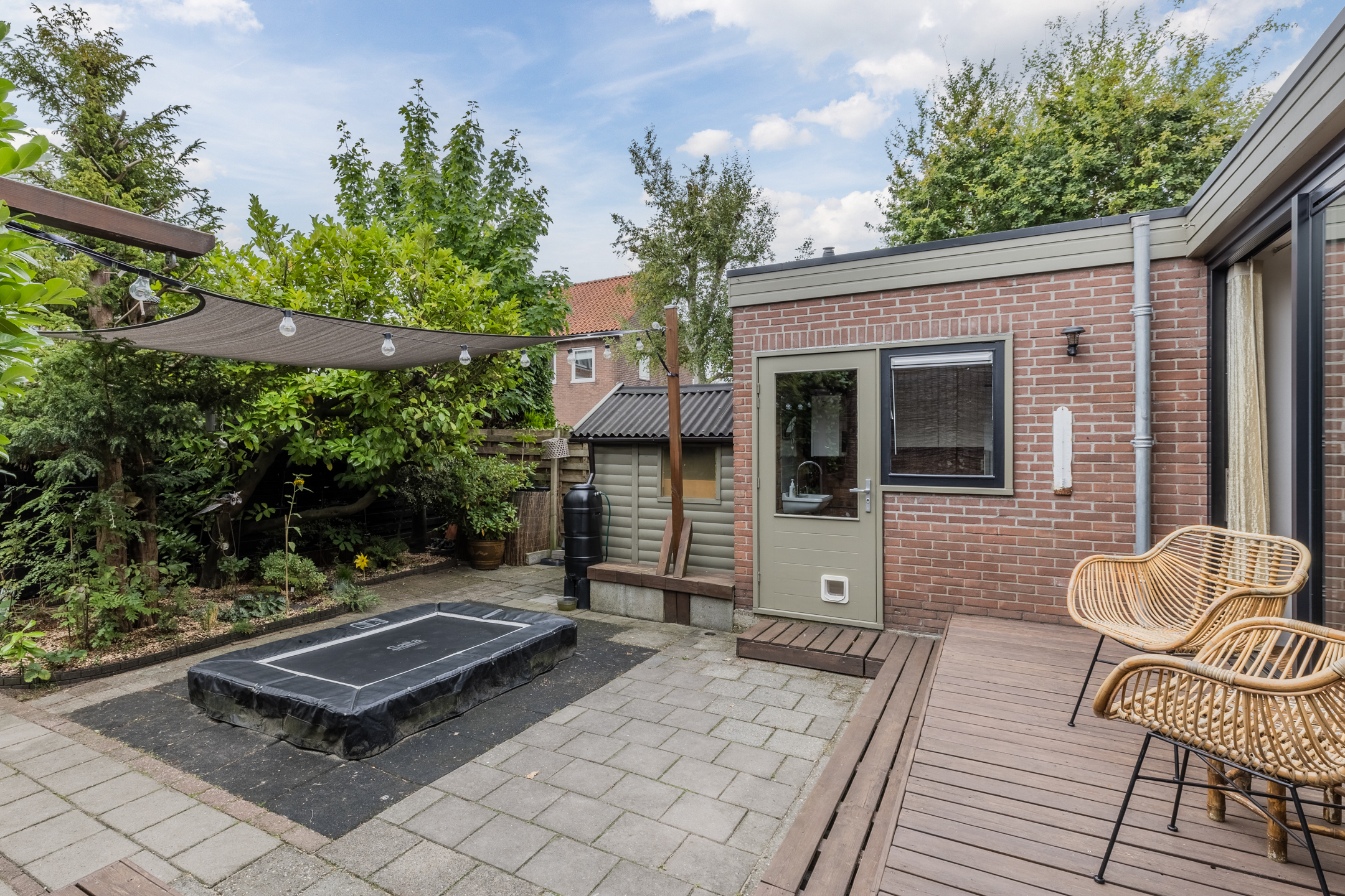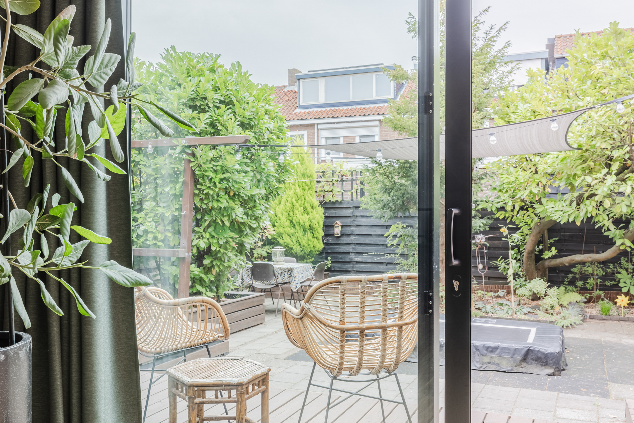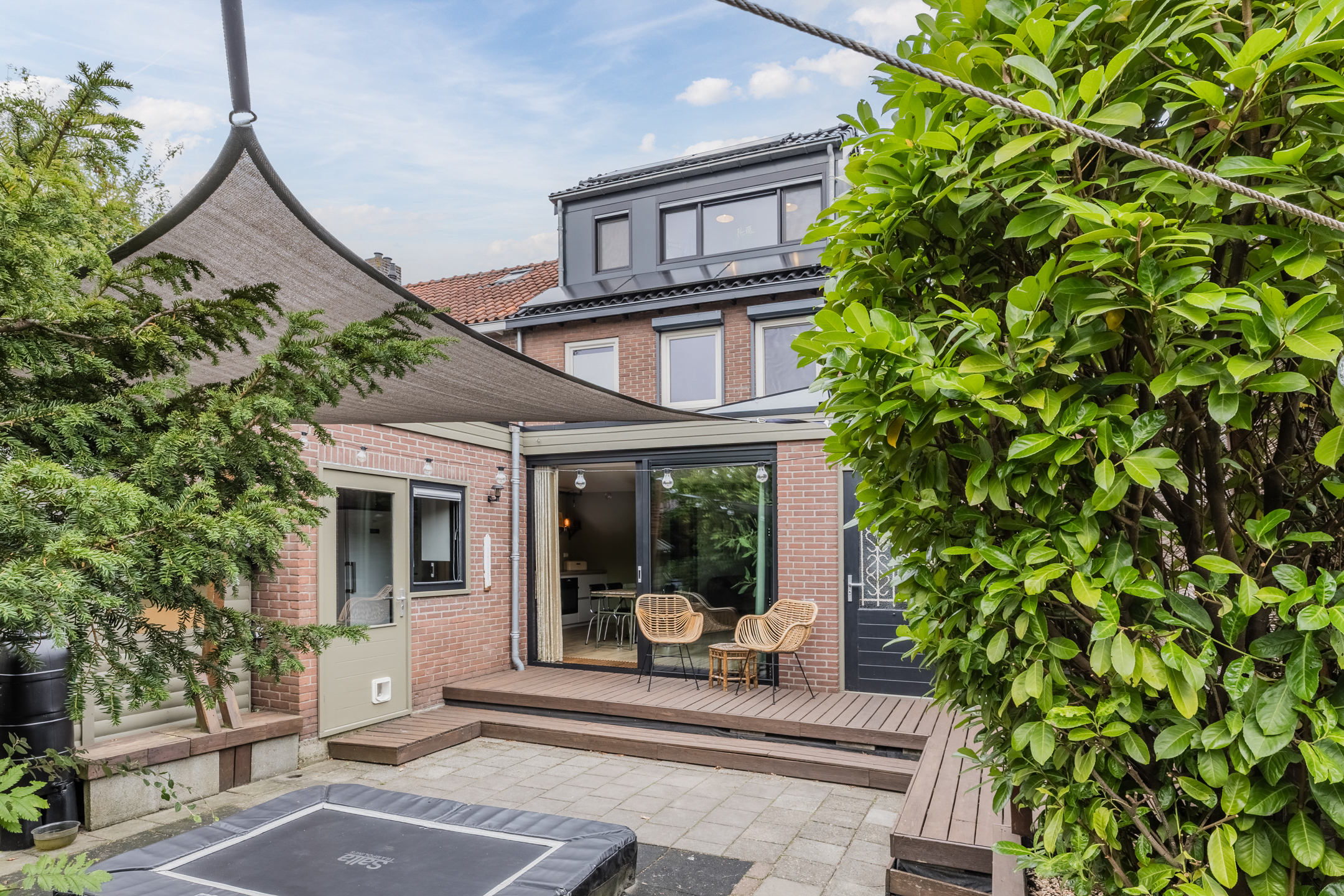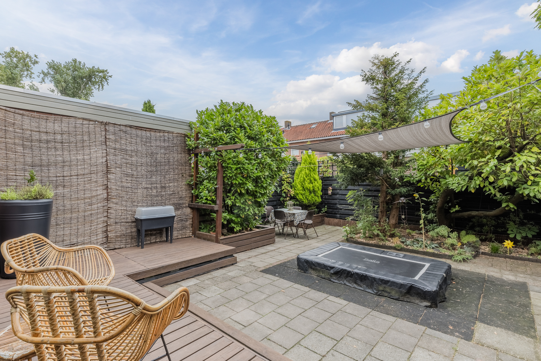Het huis beschikt over een ruime, fraai aangelegde achtertuin. De tuin is sfeervol ingericht met houten vlonderplanken, tegels en groen. Hier geniet je van 10:00 tot 18:00 uur van de zon. Er zijn diverse zon- en schaduwplekken, waardoor het overal in de tuin heerlijk vertoeven is. Dankzij de uitstekende beschutting geniet je bovendien van veel privacy. Voor de kinderen is er een trampoline aanwezig.
