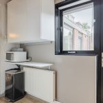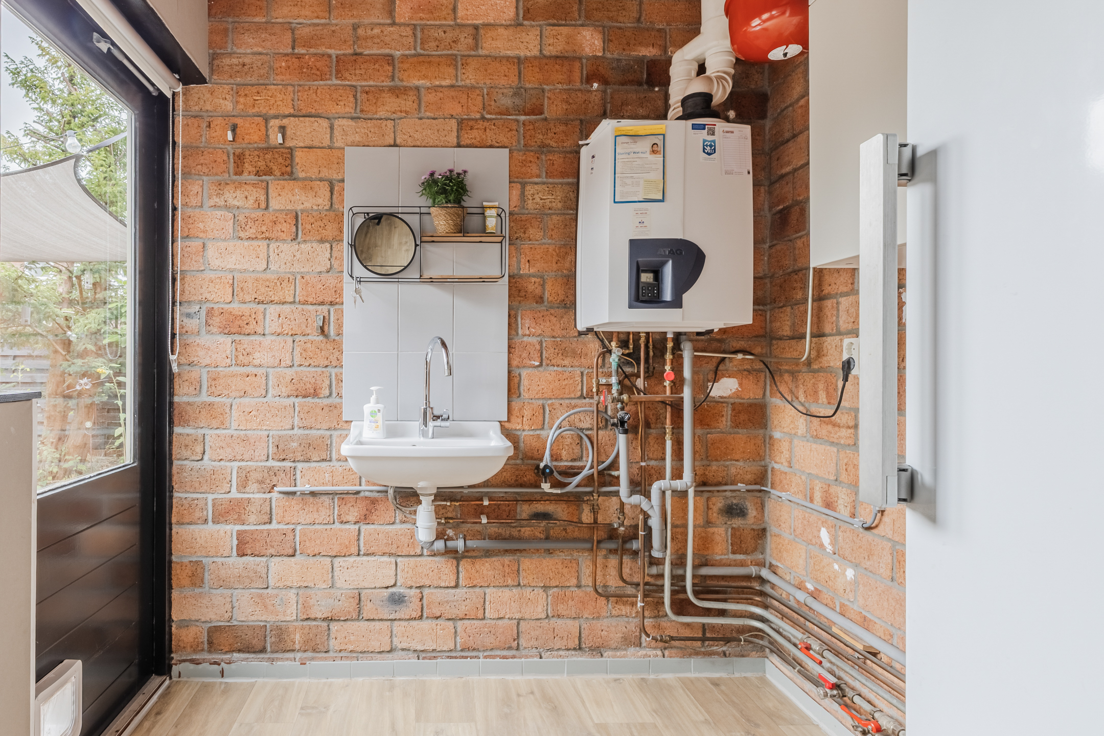 Vanuit de keuken loop je zo de bijkeuken in. Deze is uitgerust met een wastafel en biedt daarnaast veel bergruimte. De bijkeuken heeft een openslaande deur naar de achtertuin.