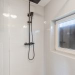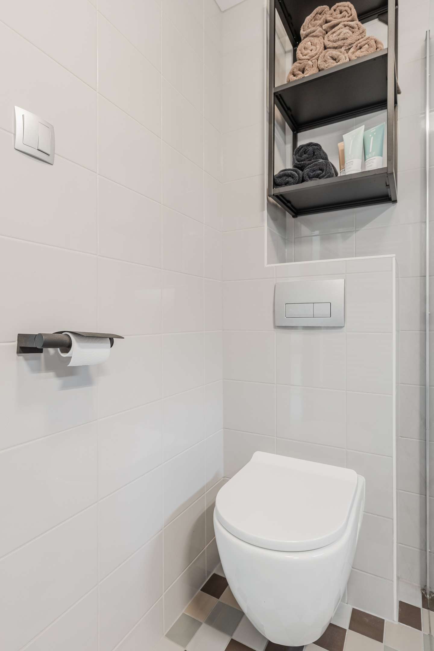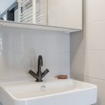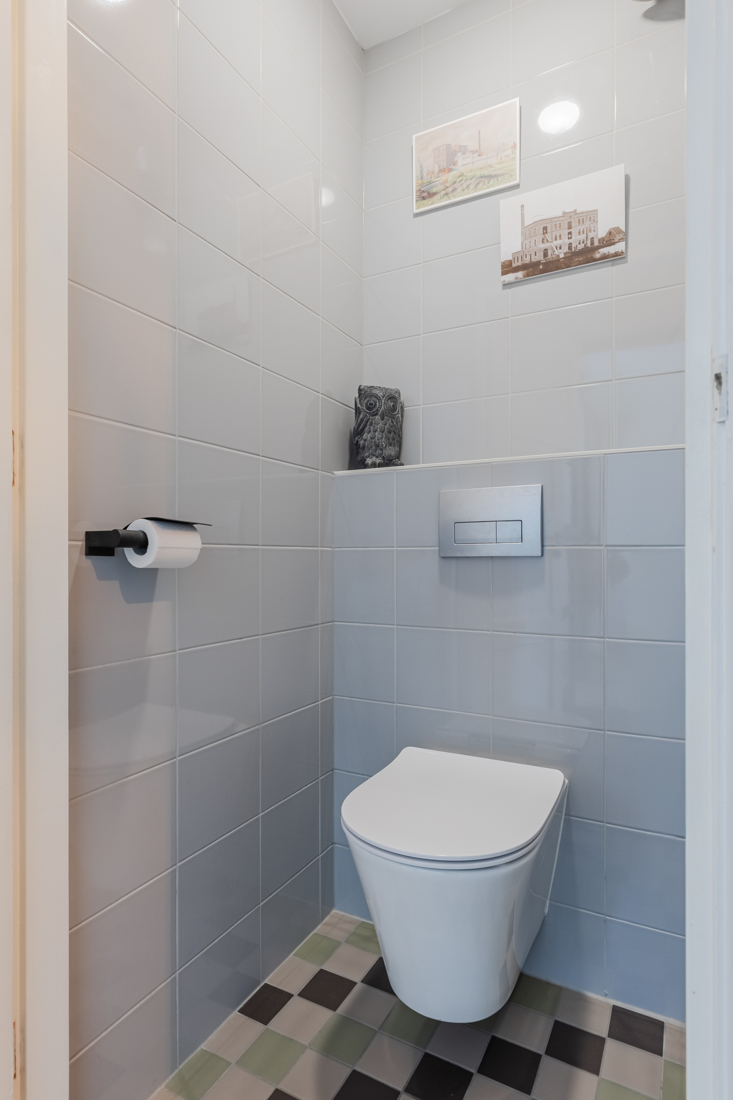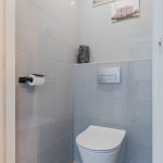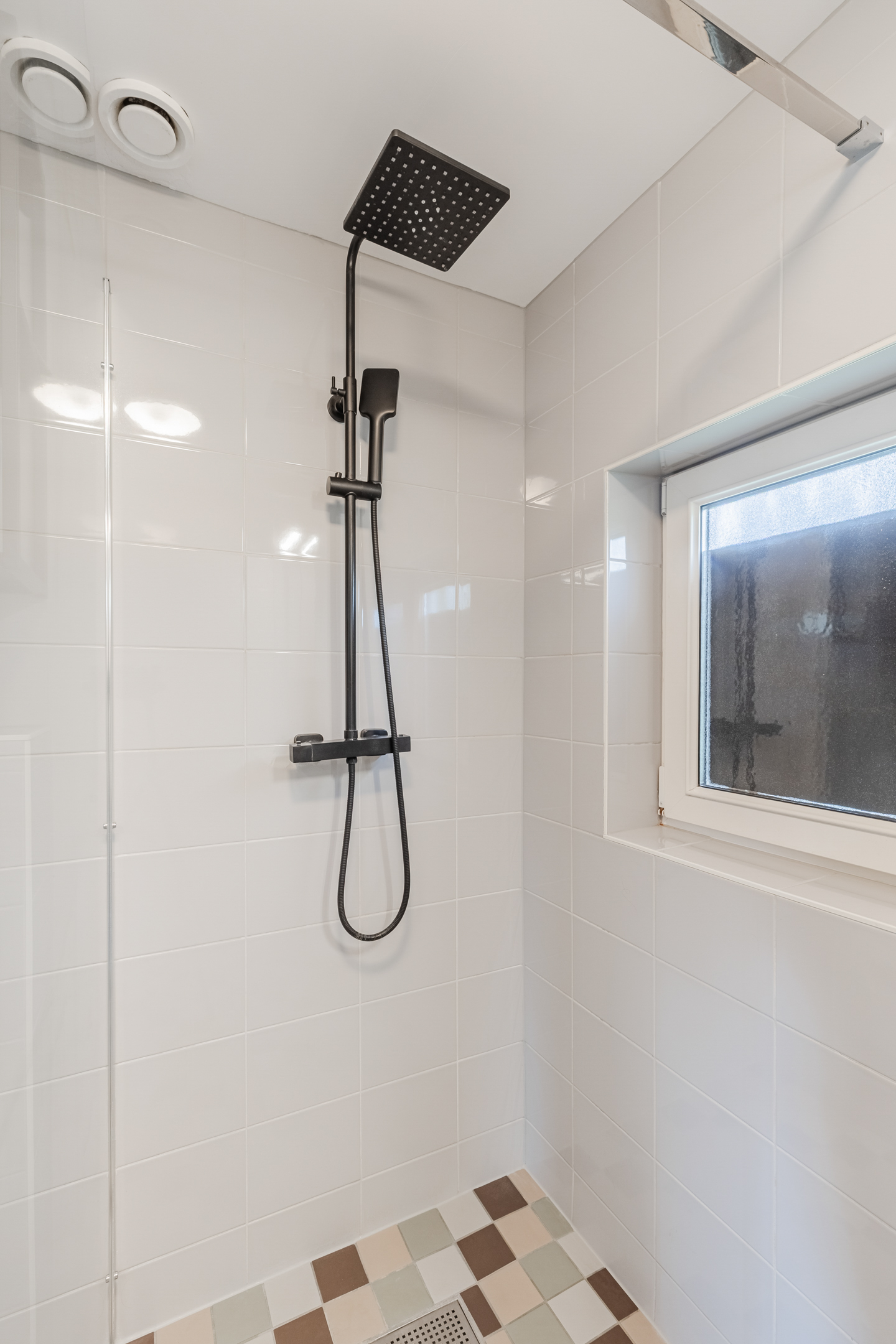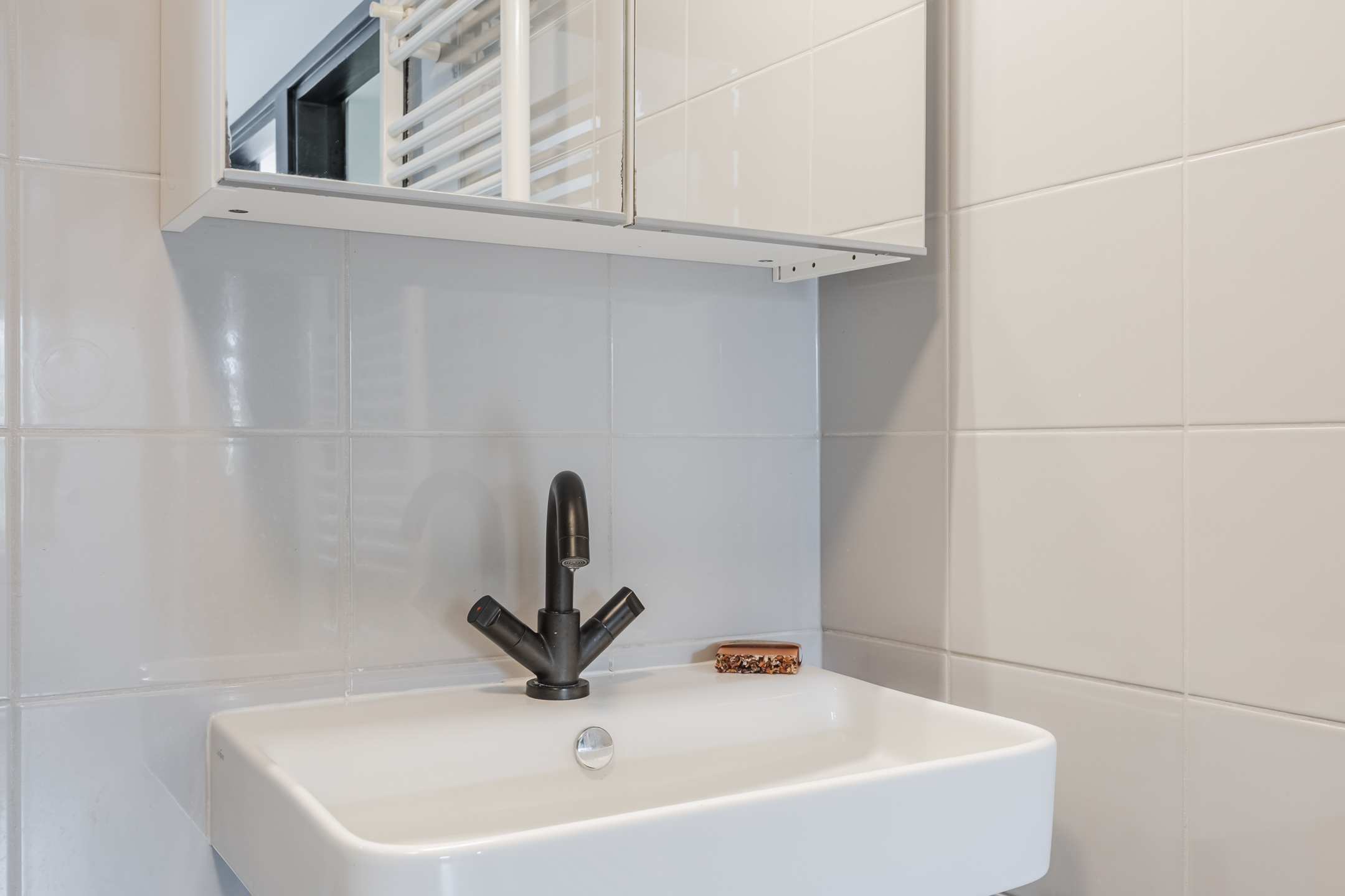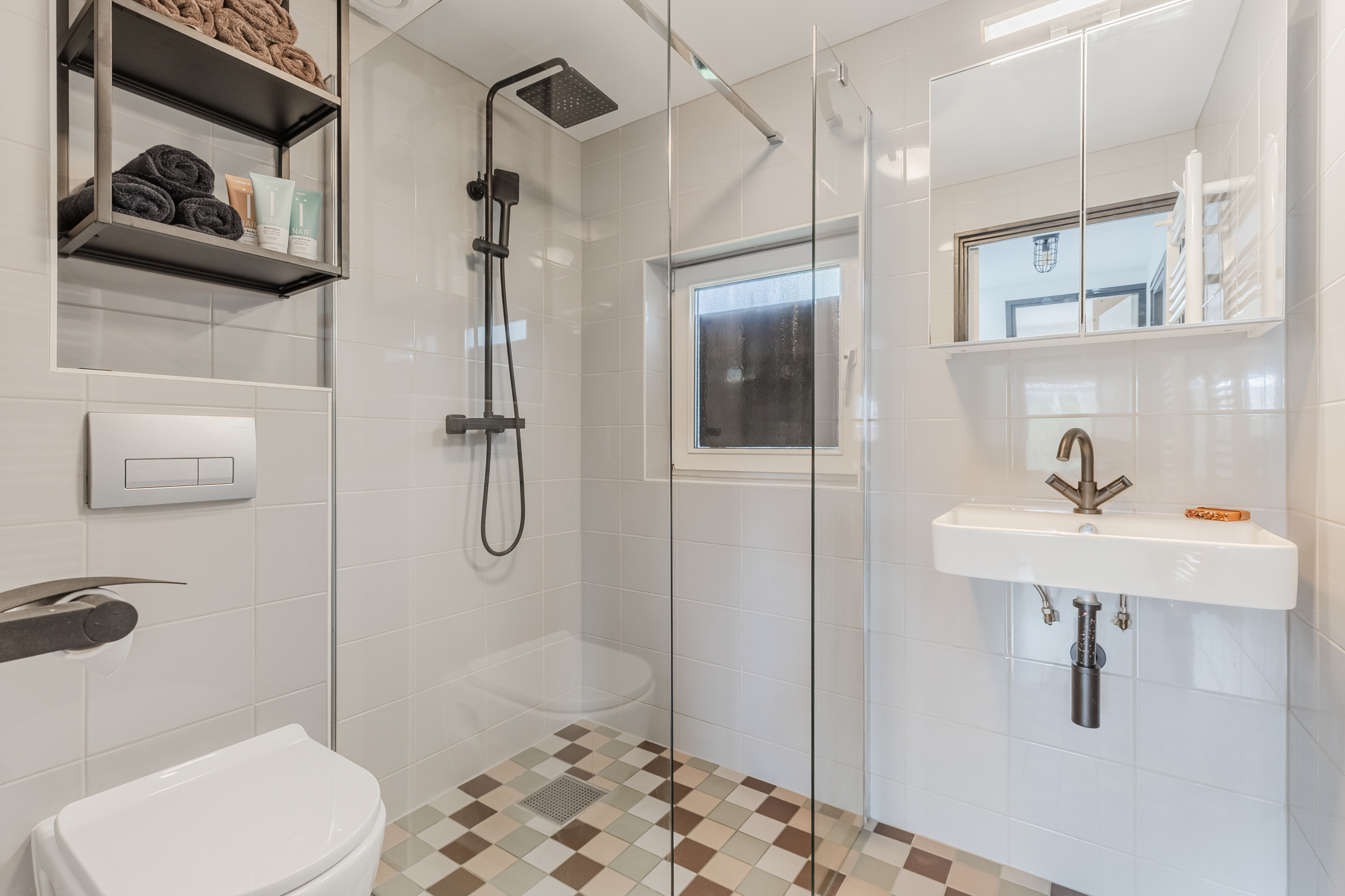 De badkamer is in 2018 vernieuwd en keurig betegeld. In deze ruimte tref je een zwevend toilet, wastafel en inloopdouche met regendouche aan.