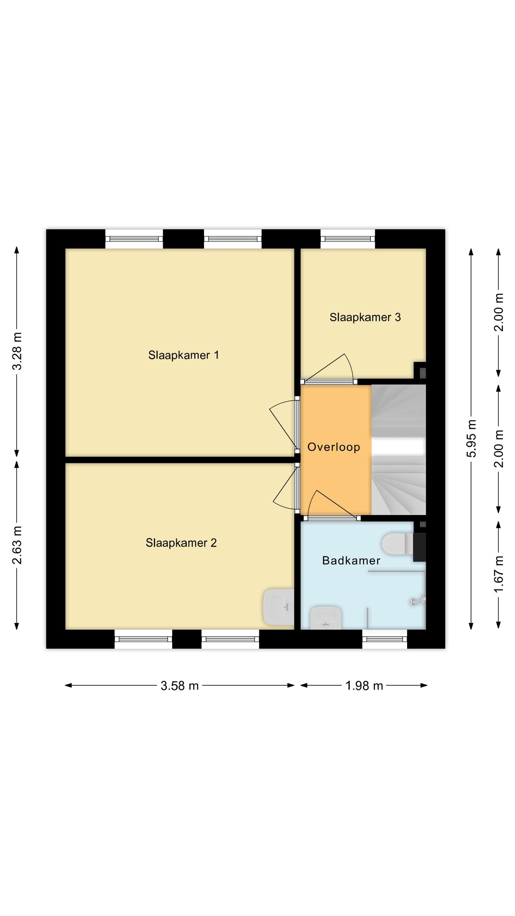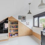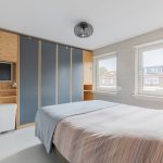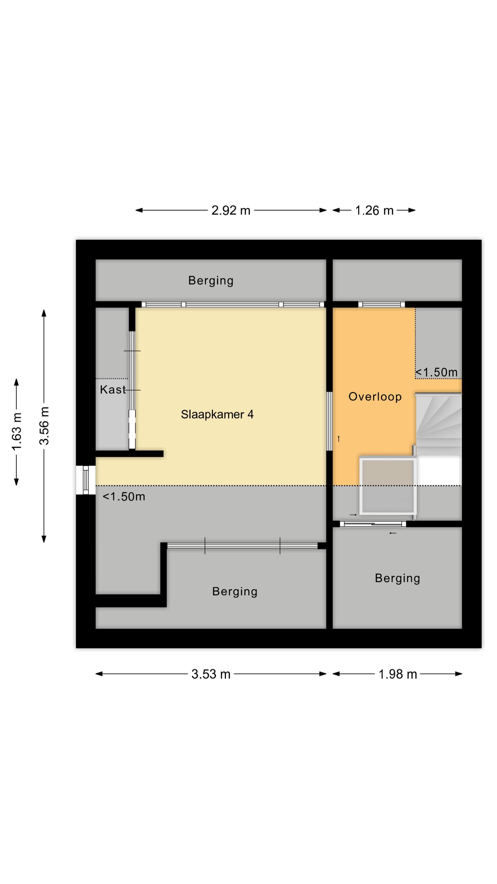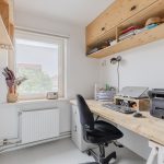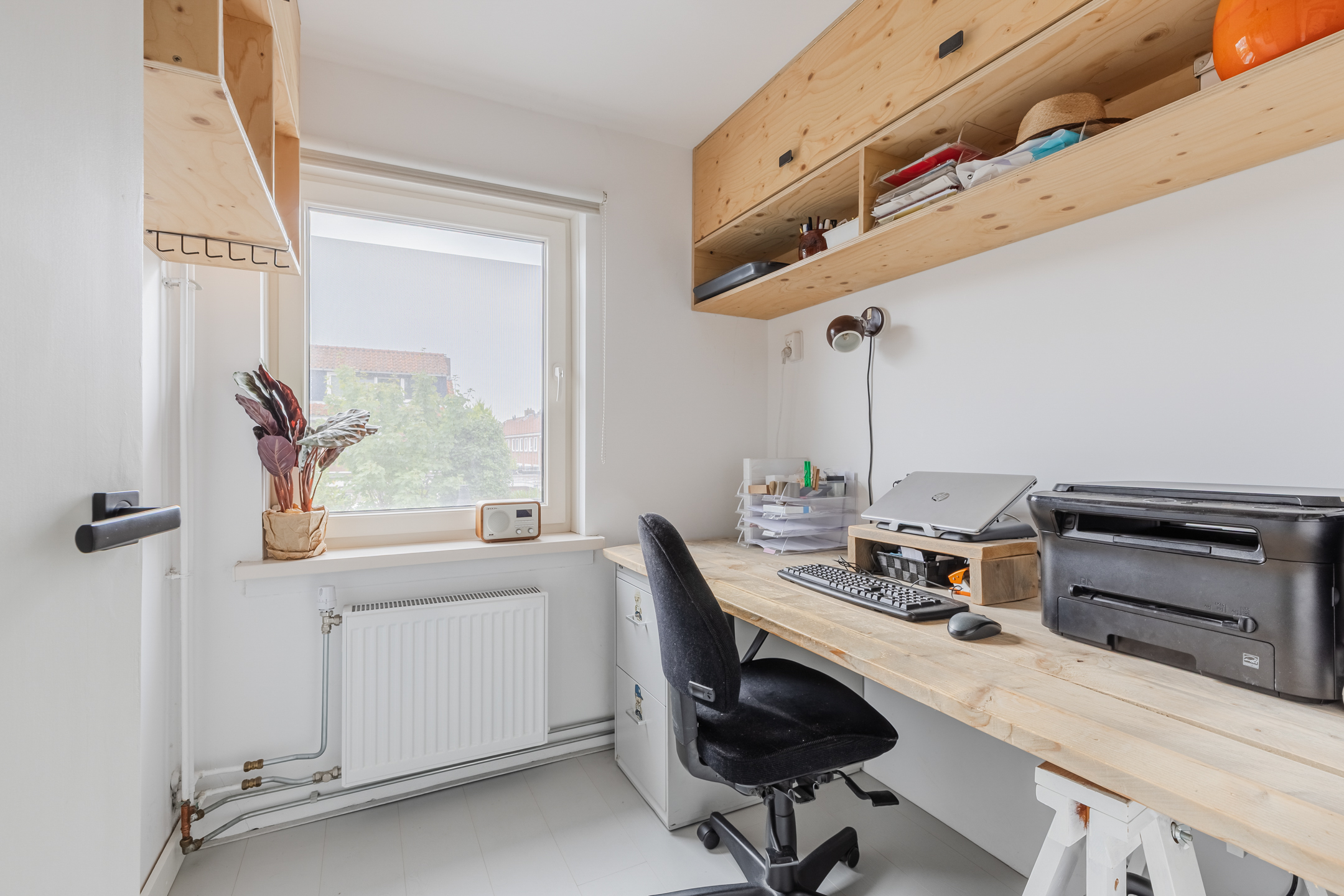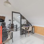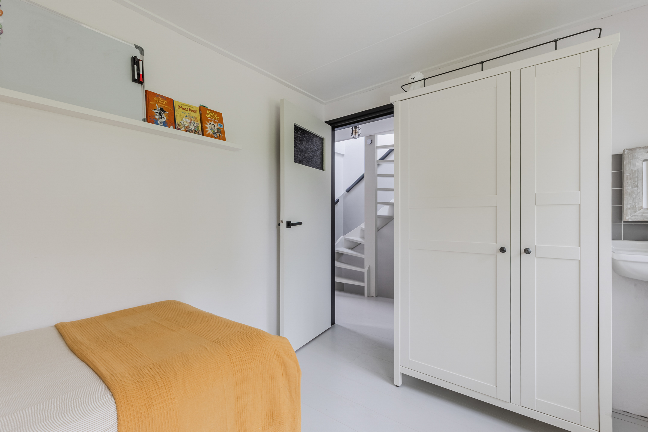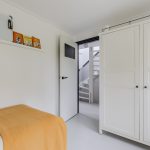 Een vaste trap geeft toegang tot de ruime overloop van de tweede verdieping. Hier is alle ruimte om een werkplek te creëren. De overloop biedt toegang tot een berging en de vierde slaapkamer. De kamer op deze verdieping is heerlijk ruim en licht dankzij de dakopbouw. Er is aan beide kanten bergruimte gecreëerd.