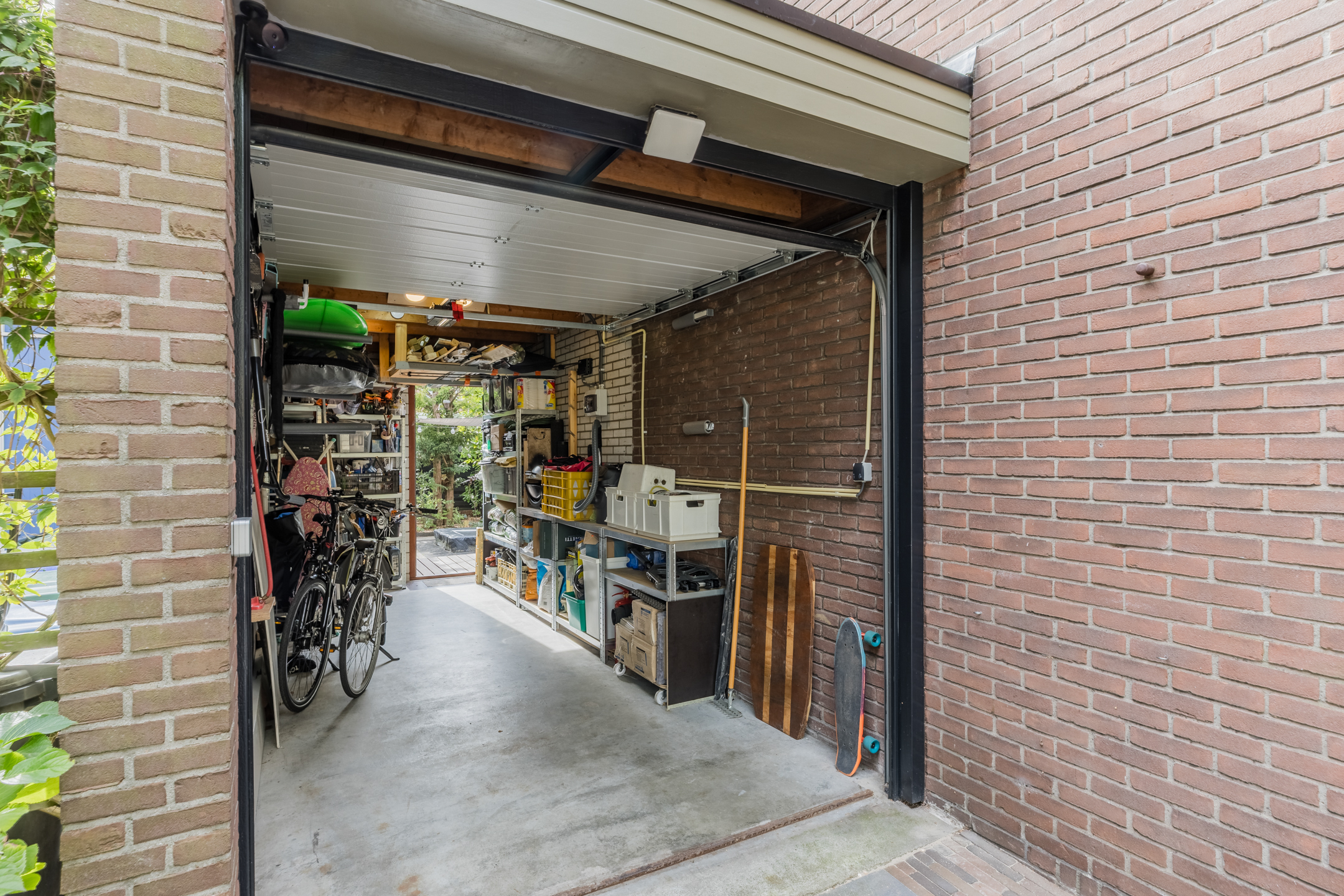 Vanuit de achtertuin heb je toegang tot een berging en de royale garage. Deze bieden genoeg ruimte om fietsen te stallen en spullen op te bergen.