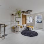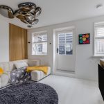 • Modern living room with access door to the roof terrace