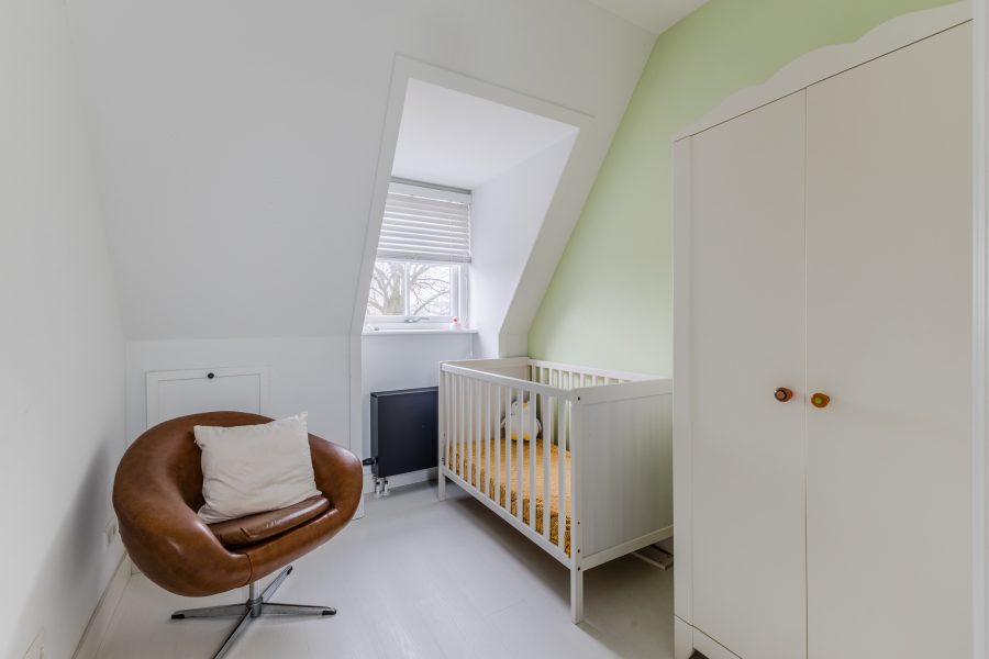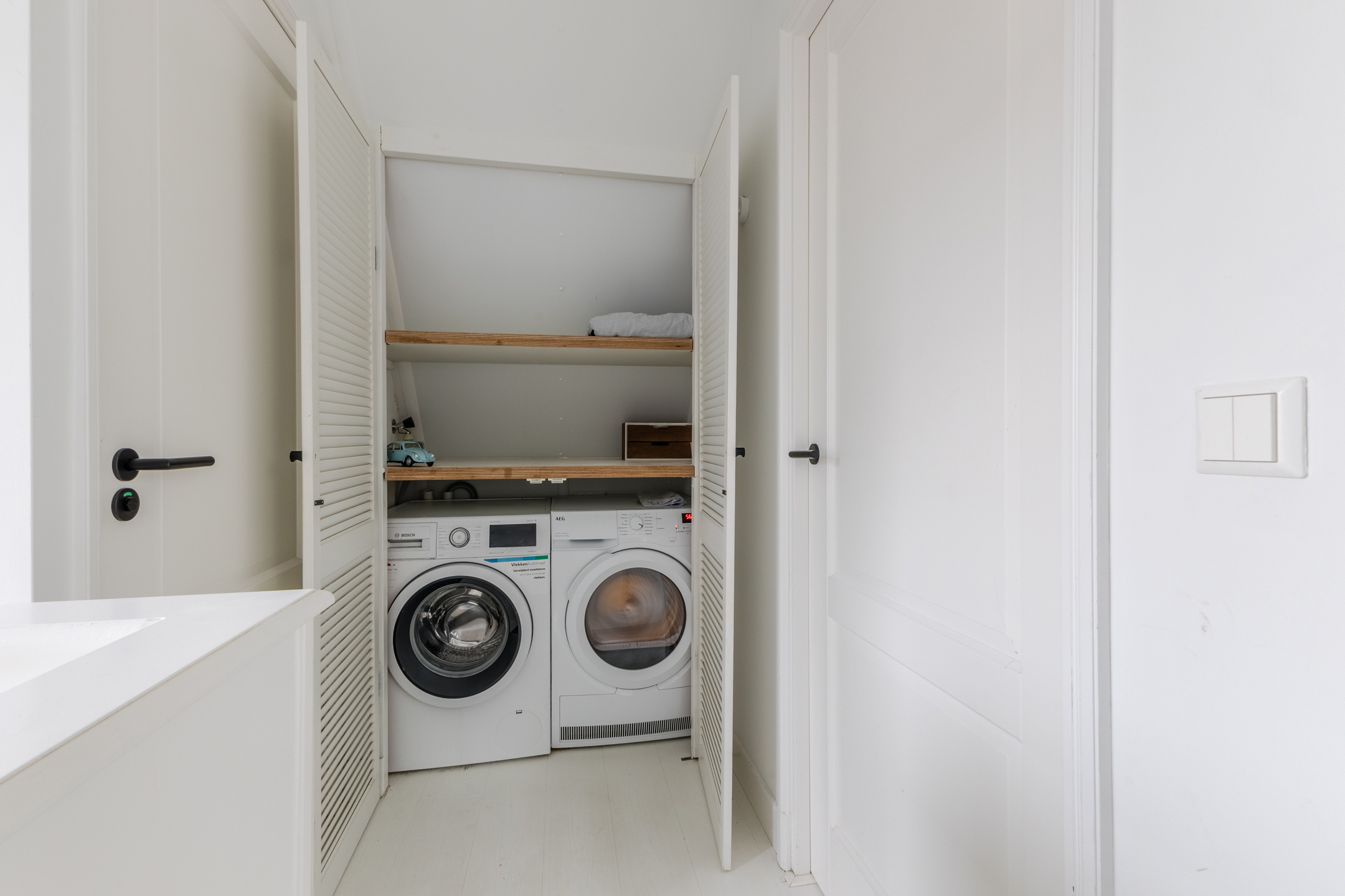 De wasmachine en droger zijn slim weggewerkt in een aparte kast. De slaapkamers op deze verdieping zijn keurig afgewerkt en genieten van een prettige lichtinval.