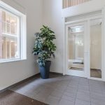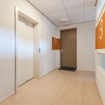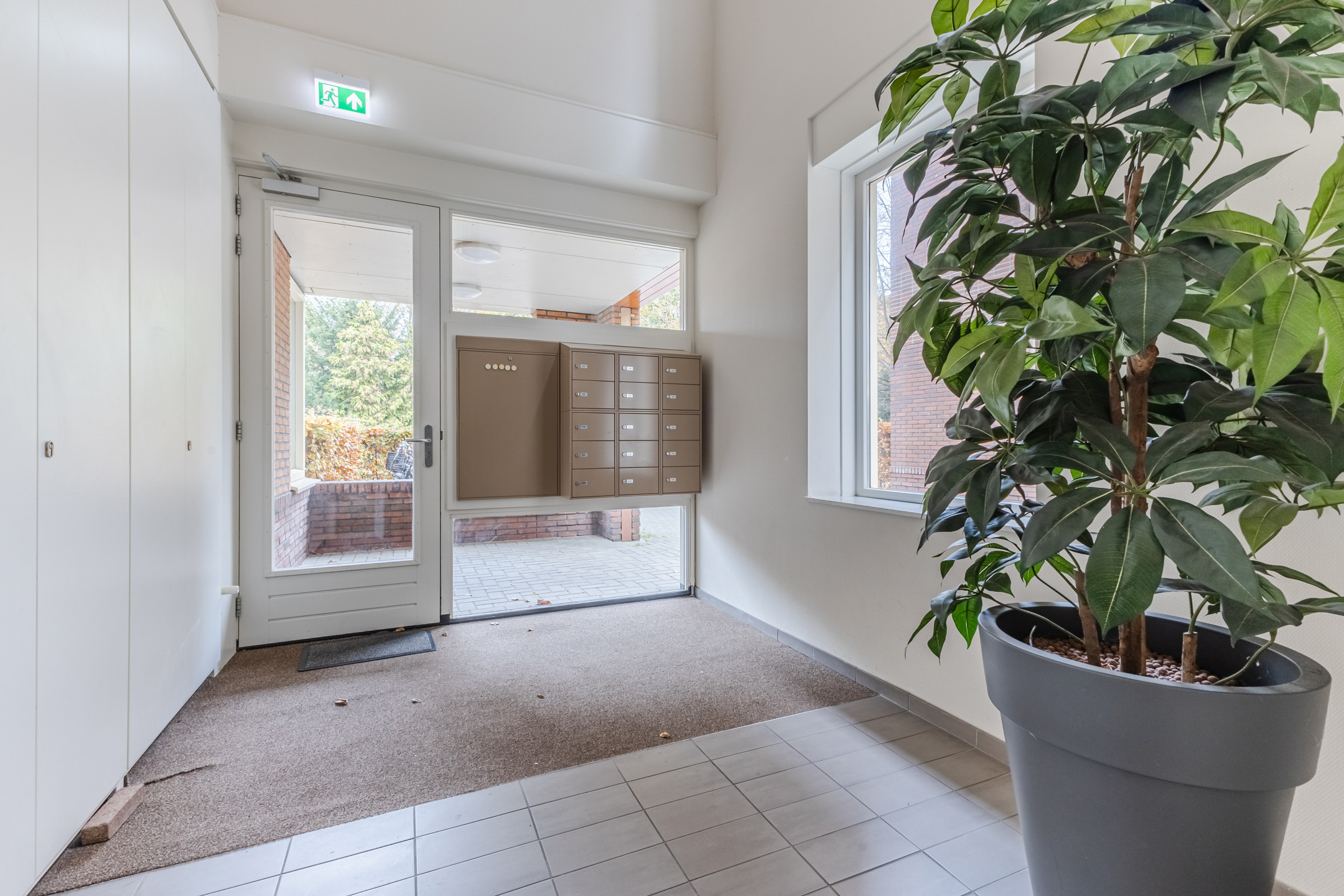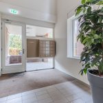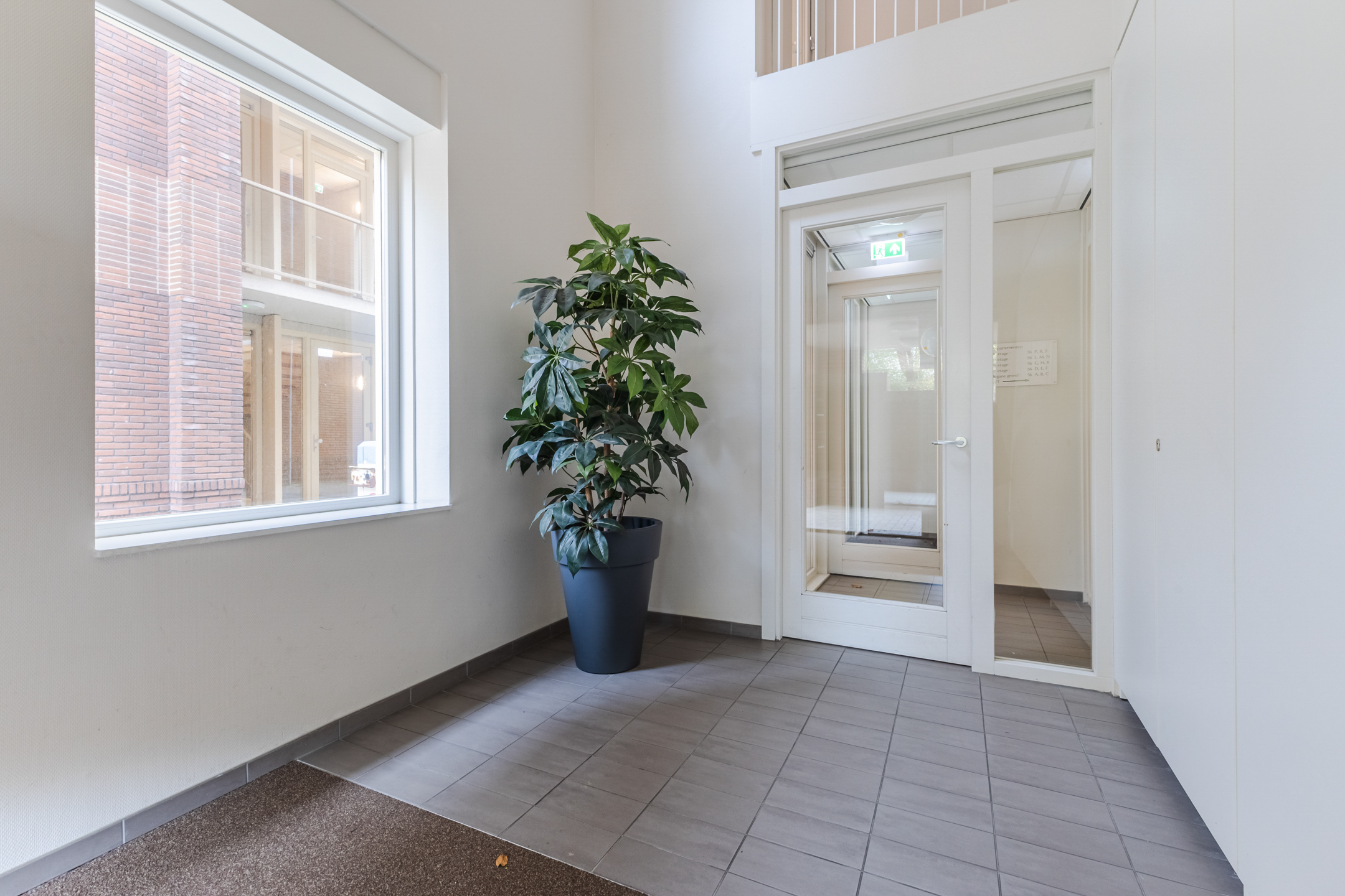 Gesloten entree met brievenbussen en bellentableau. Er is een gemeenschappelijke hal met een lift.