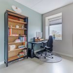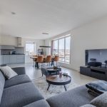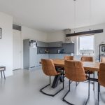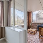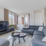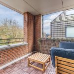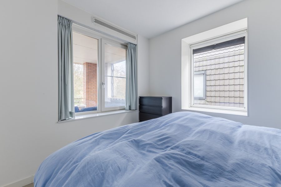 The cozy and spacious living room forms the heart of the apartment. Here, a nice floor has been chosen and the walls are beautifully finished. Thanks to the presence of several large windows, the living room enjoys an abundance of natural light. From here, you have a beautiful view of the green surroundings. The living room has a door leading to the covered balcony. The balcony is spacious and nicely landscaped. There is enough space here to create a lovely lounge area. On the balcony, you can enjoy the nice weather and a beautiful view of the surroundings.