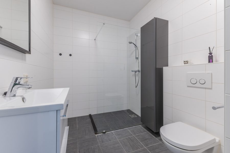 • Nette badkamer met toilet, wastafel en inloopdouche