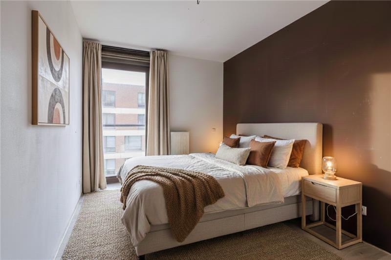 The spacious bedroom has neat flooring and beautifully finished walls. The high window provides pleasant natural light. The bedroom leads directly into the living room. The living room is the heart of the apartment and is spacious. This room has beautiful flooring and sleek walls. Thanks to the presence of several high windows, the living feels wonderfully light and spacious. From the living room, you have a beautiful view of the lively surroundings.