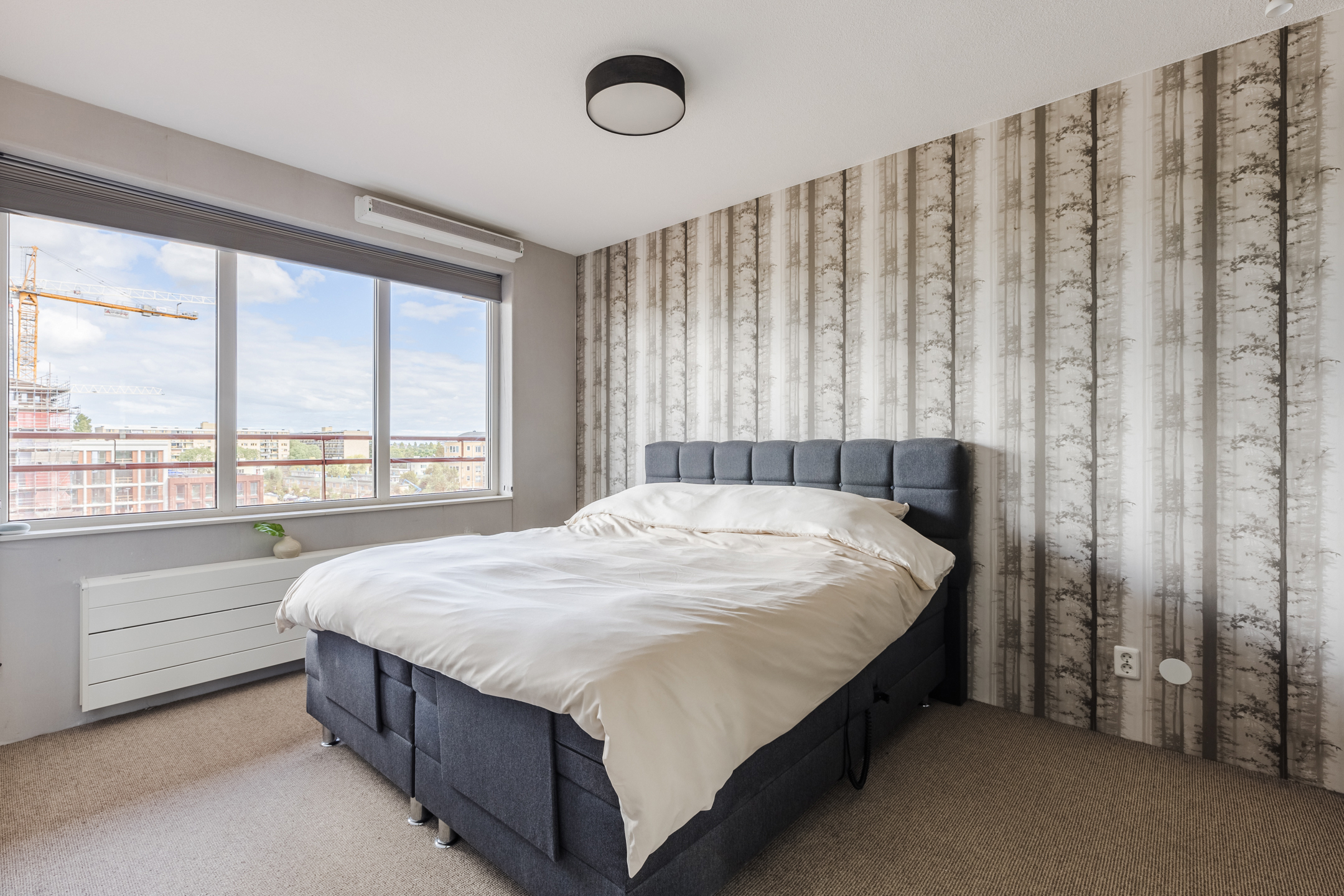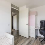 The apartment has two spacious bedrooms, both of which are neatly finished. The bedrooms have large windows and therefore enjoy pleasant natural light. The spacious and neat bathroom has dark floor tiles and white wall tiles. In this room, you will find a vanity unit with sink and a walk-in shower with rain shower. In addition, the apartment has a separate toilet room with a floating toilet and sink.