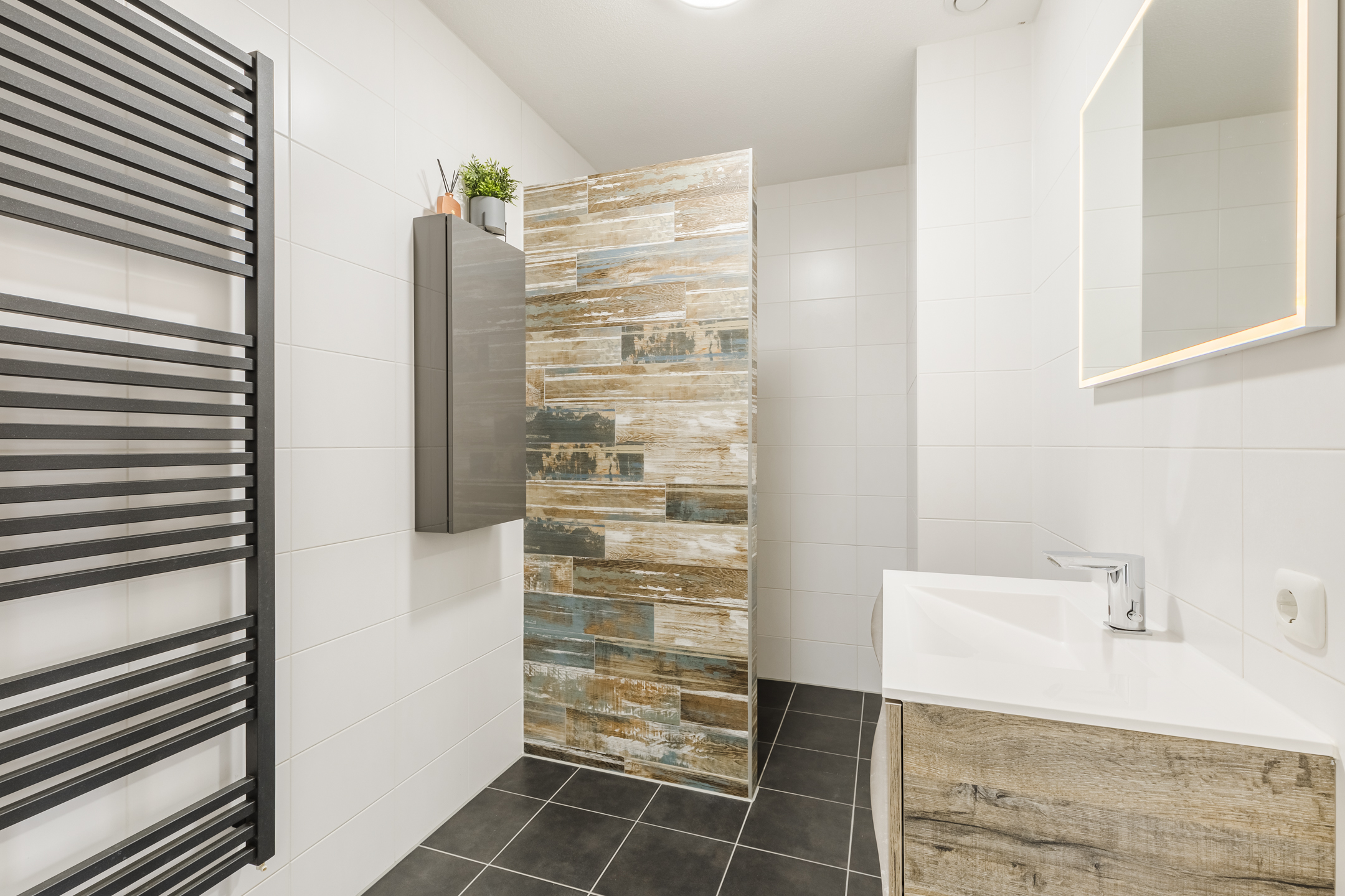 • Nette badkamer met wastafel en inloopdouche