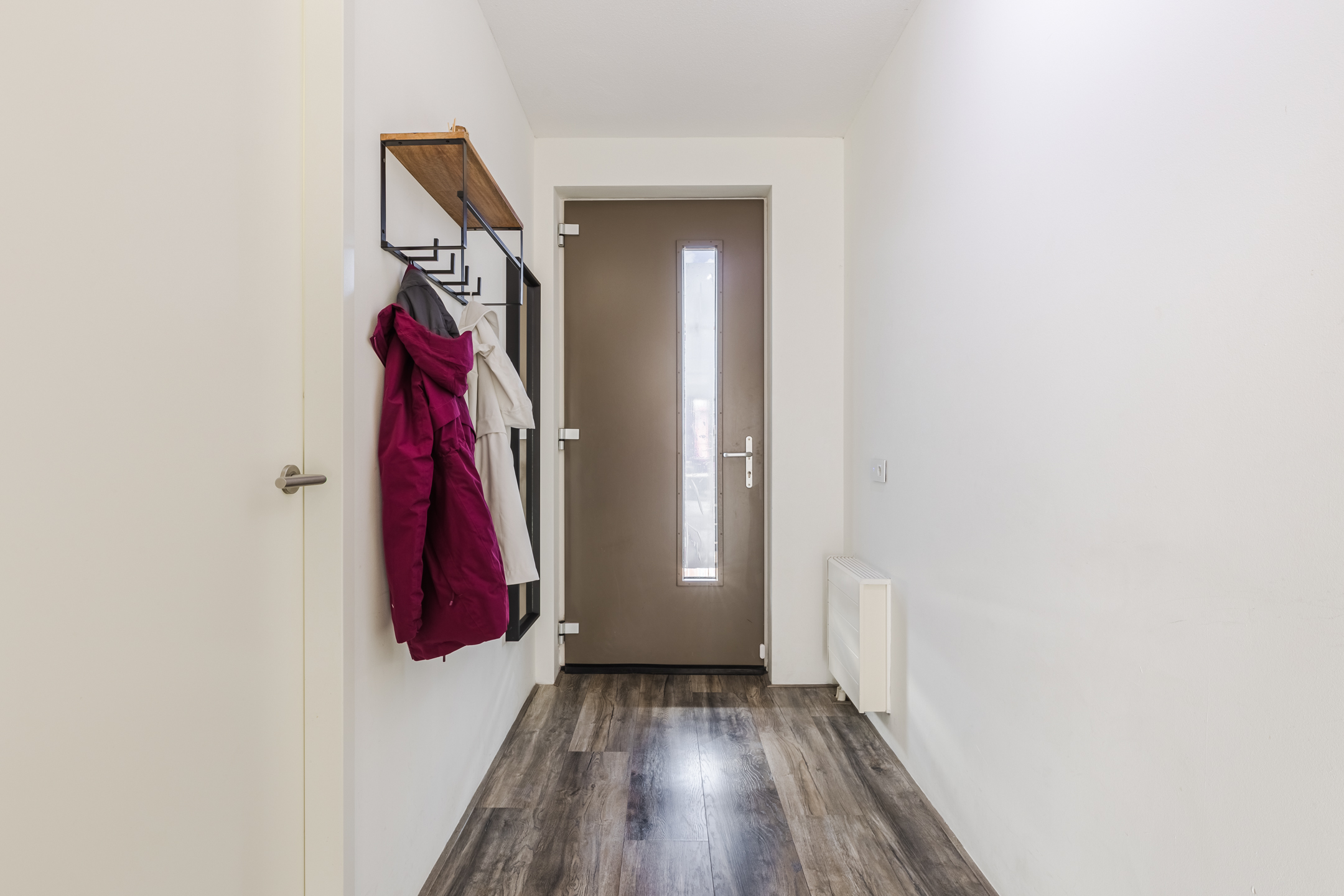From the entrance hall, you also have access to the meter cupboard and two storage rooms. In one of the storage rooms, you will find the connections for the washing machine and dryer.