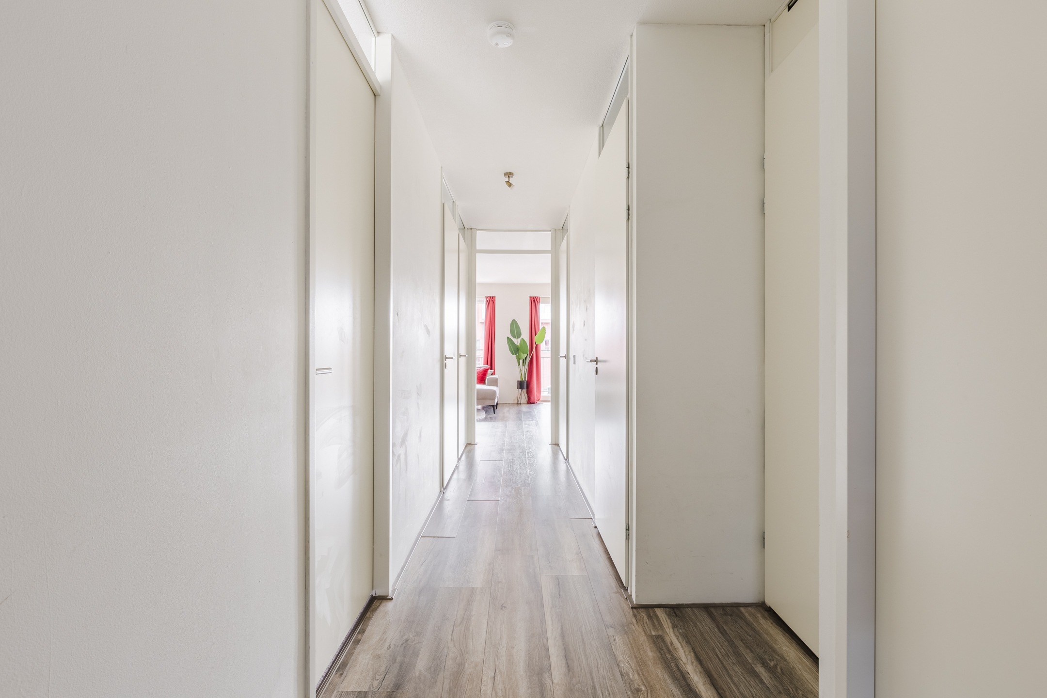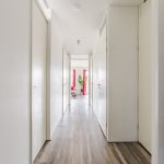 Het appartement ligt op de vijfde verdieping van een netjes onderhouden complex. Achter de voordeur vind je een ruime en fraai afgewerkte entreehal, die toegang biedt tot meerdere vertrekken.