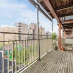 Vanuit de woonkamer stap je zo het balkon op. Dit ruime balkon biedt alle ruimte om een fijne loungeplek te creëren. Dankzij de ligging op het zuidwesten profiteer je van veel zonuren. Het is een heerlijke plek om van het zonnetje en het mooie uitzicht te genieten.