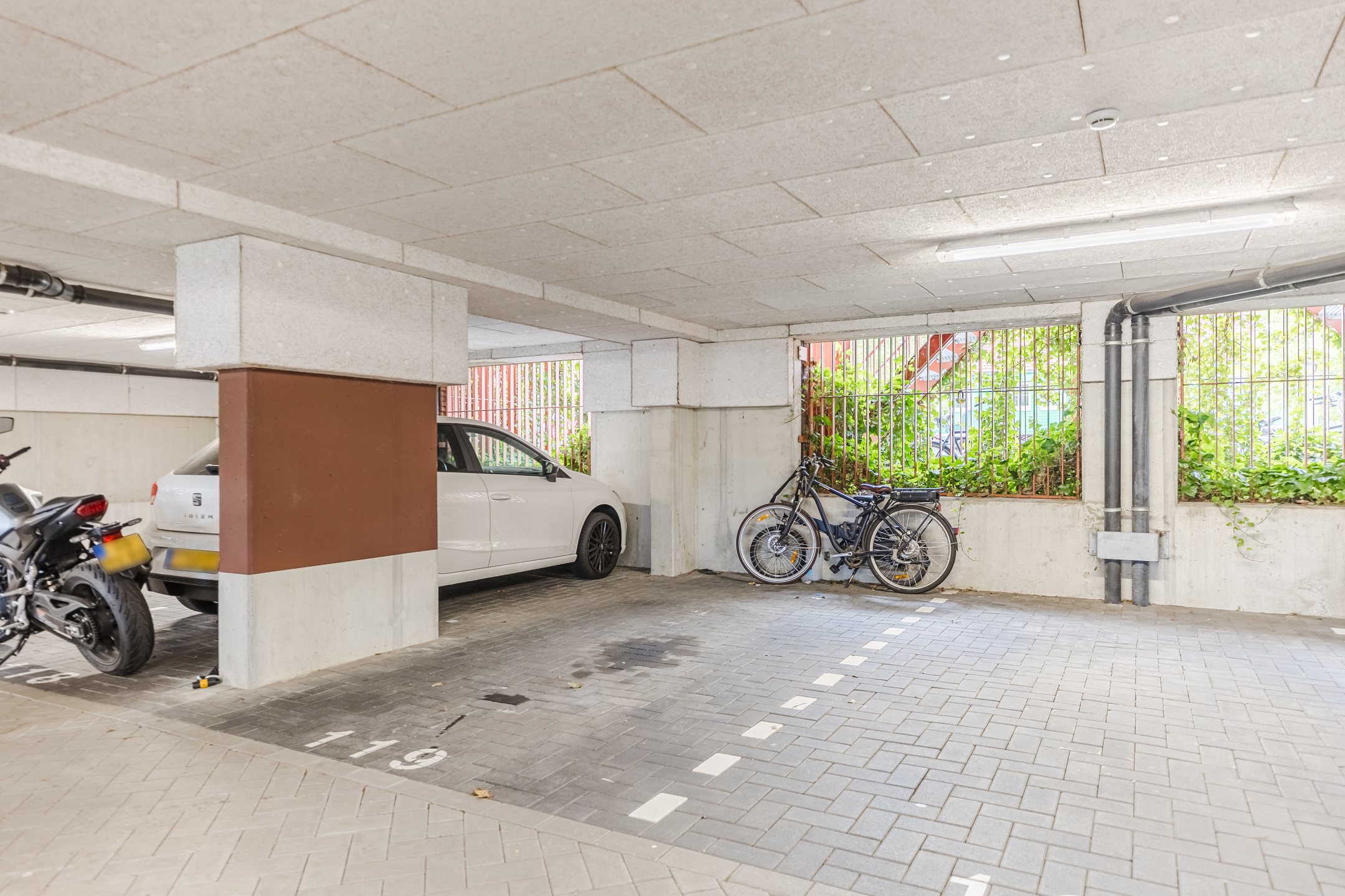 Eigen parkeerplek in de parkeergarage.