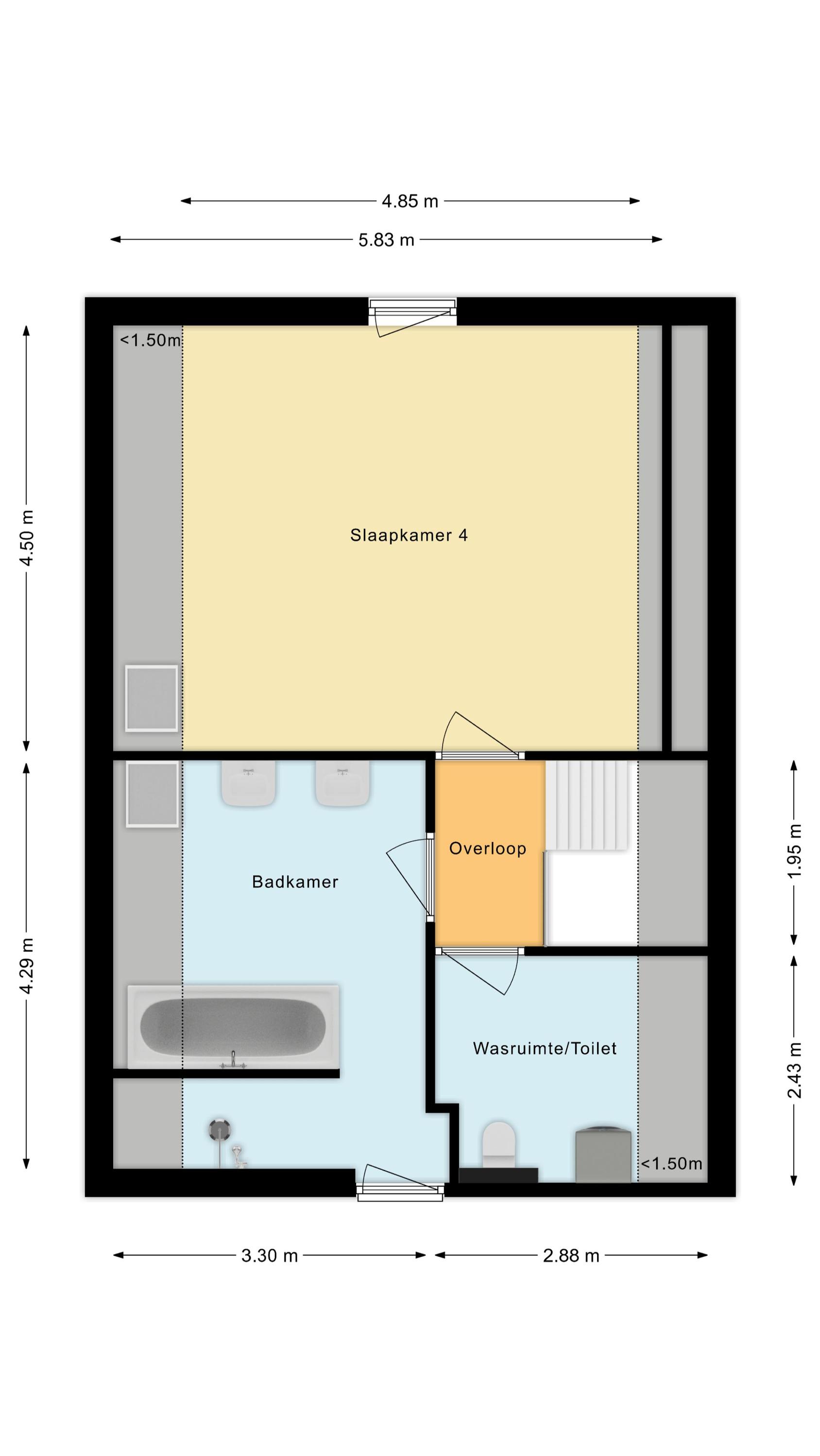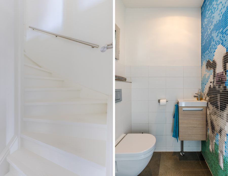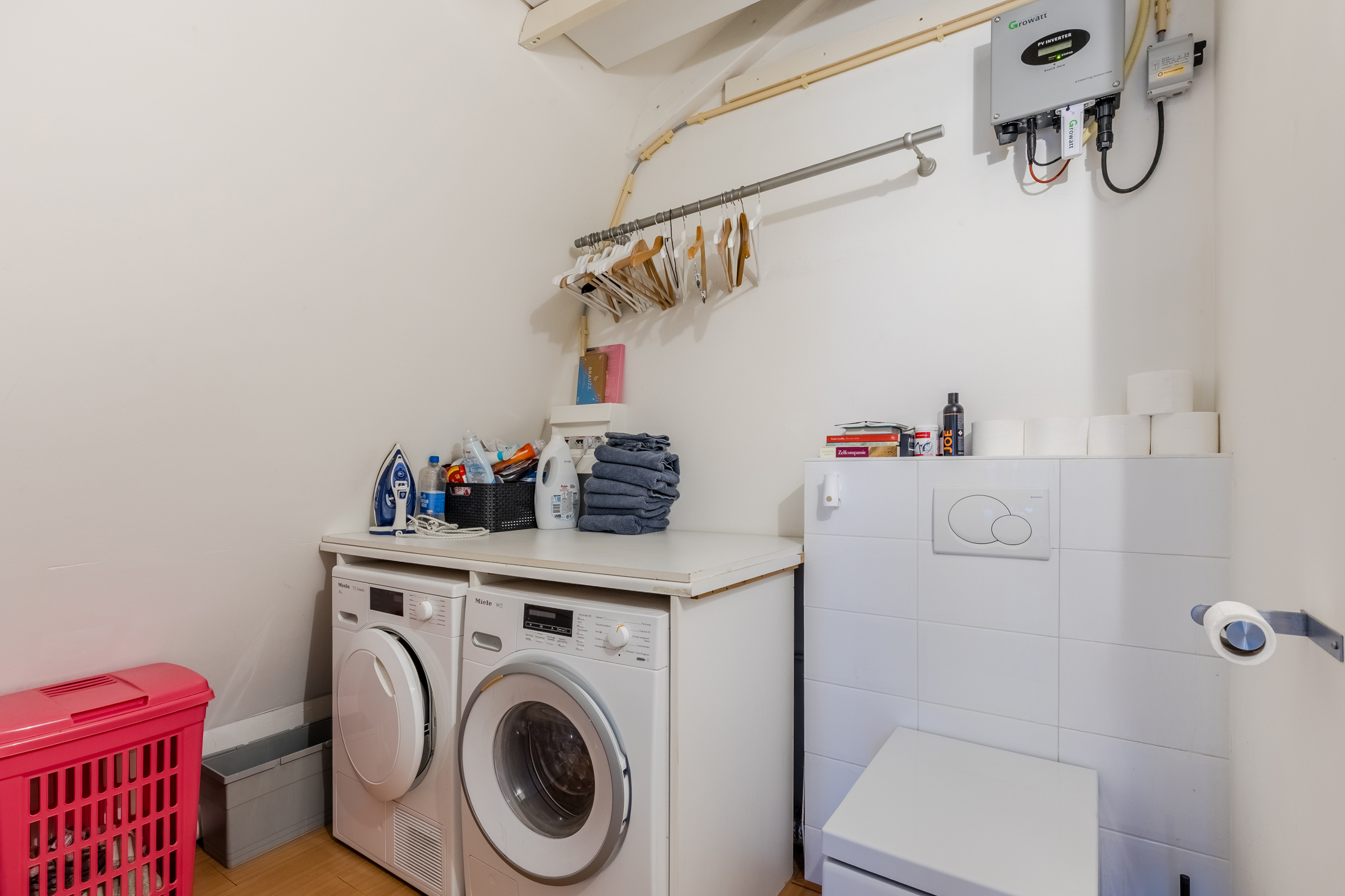 Op de tweede verdieping bevindt zich ook nog een aparte wasruimte met daarin een zwevend toilet en de aansluitingen voor de wasmachine en droger.
