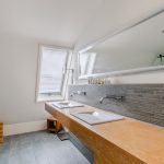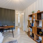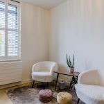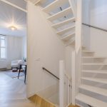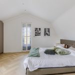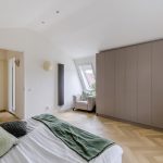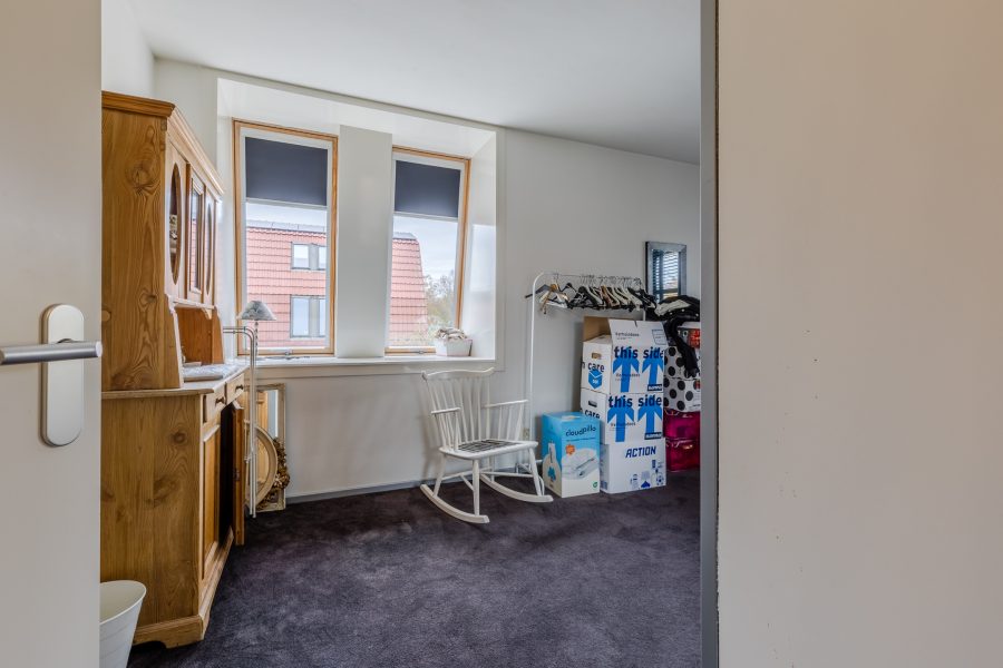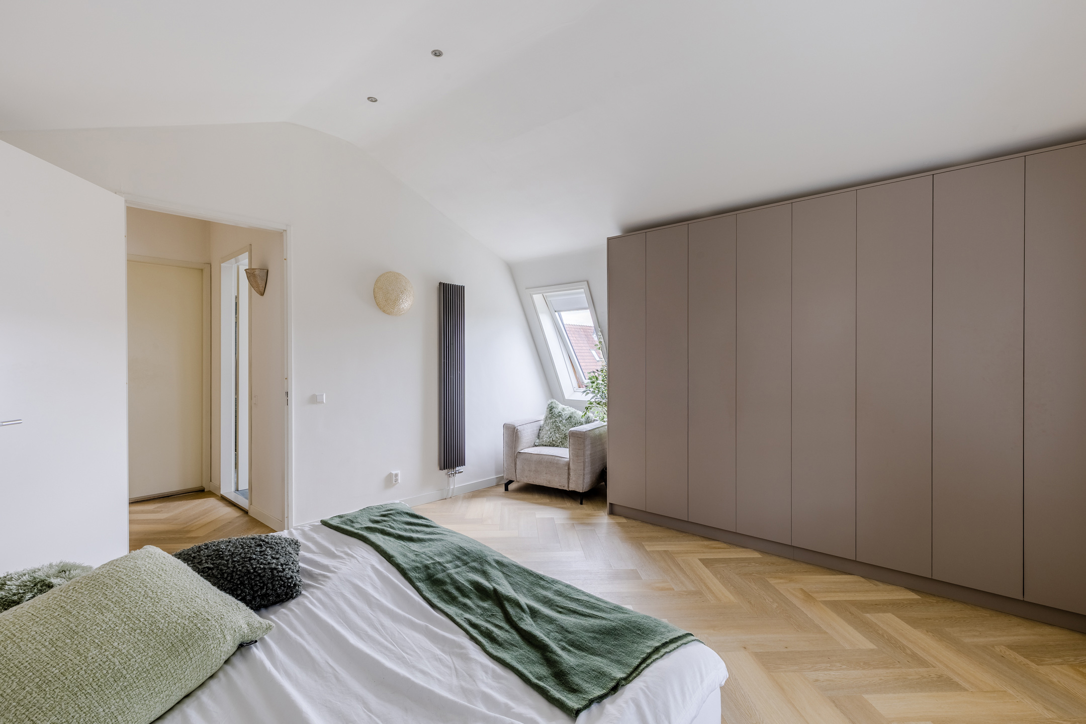 This floor has three bedrooms and a bathroom. Two bedrooms have carpeted floors and one has herringbone flooring. All rooms are spacious, modernly finished and wonderfully light. The bathroom is nicely tiled and equipped with a floating toilet, vanity with double sink and a walk-in shower. There is electric underfloor heating in the bathroom.