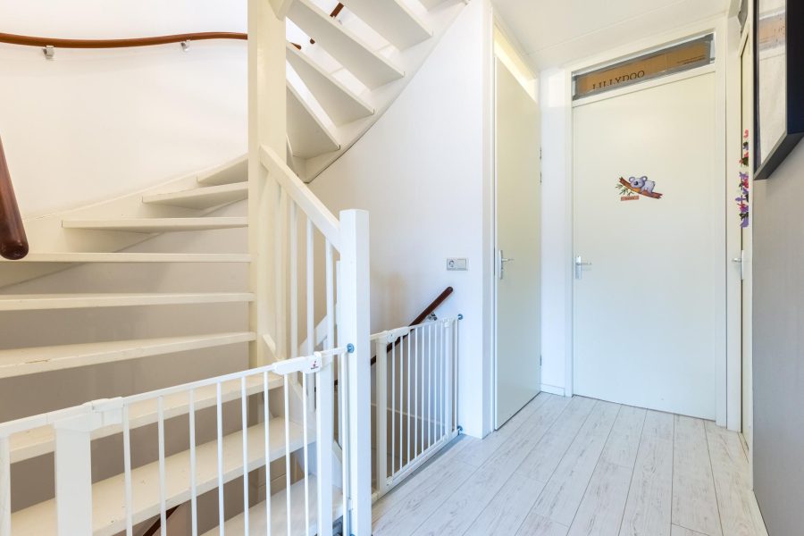Via de trap bereik je de overloop van deze verdieping. Hier treffen we drie slaapkamers, een separaat toilet en de badkamer aan. De grootste slaapkamer ligt aan de achterzijde en is voorzien van een dakkapel, de twee overige slaapkamers liggen aan de voorzijde en de badkamer ligt centraal op de verdieping. In de badkamer tref je een badmeubel met wastafel en spiegelkast, een designradiator en een ligbad aan. Ook deze verdieping is keurig afgewerkt.