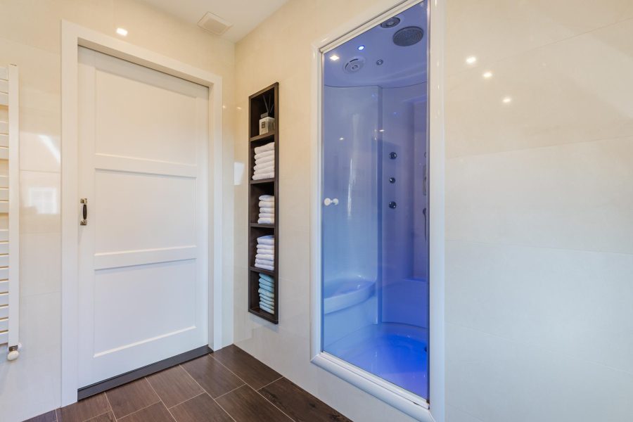 • Bathtub and luxurious steam shower cabin with light and aromatherapy