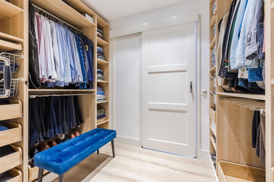 • Eigentijdse badkamer met toegang tot een inloopkast