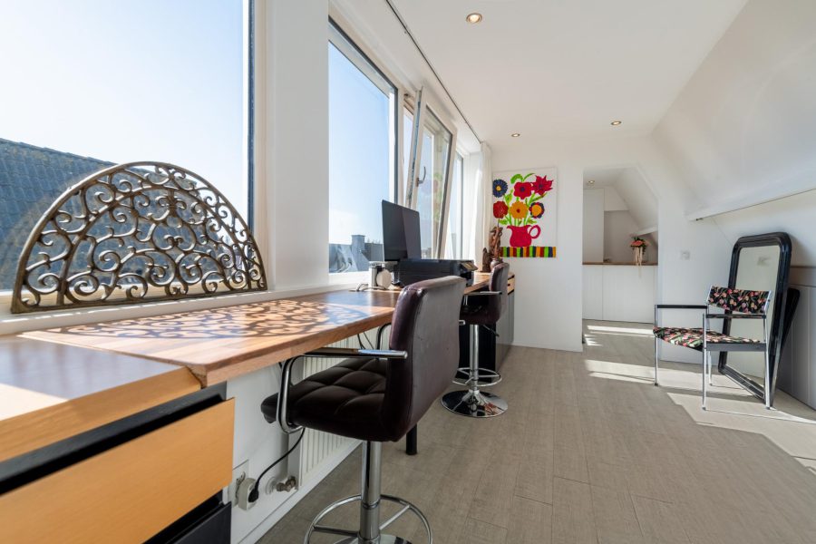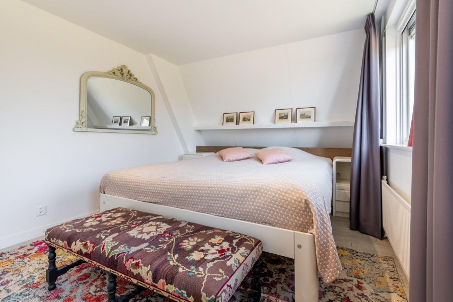Here you will find bedroom number three. This bedroom has a wide dormer window. This floor is also well finished. Here you will also find a lot of (closed) storage space.
