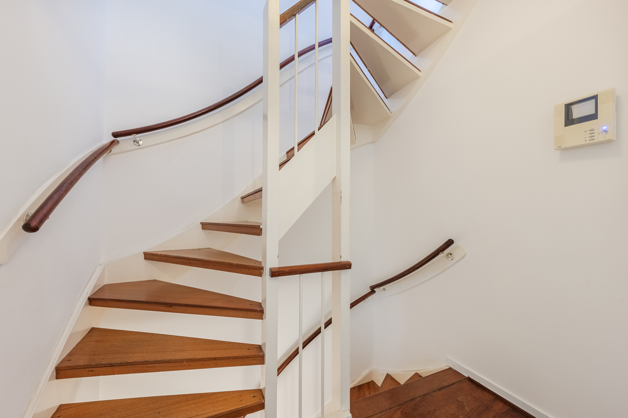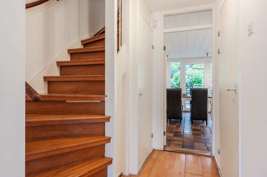 In de tweede hal bevinden zich de trap naar de eerste verdieping en meerdere bergkasten. In één van deze bergingen vind je de aansluitingen voor de wasmachine en droger. Vanuit de tweede hal heb je toegang tot de gesloten keuken.