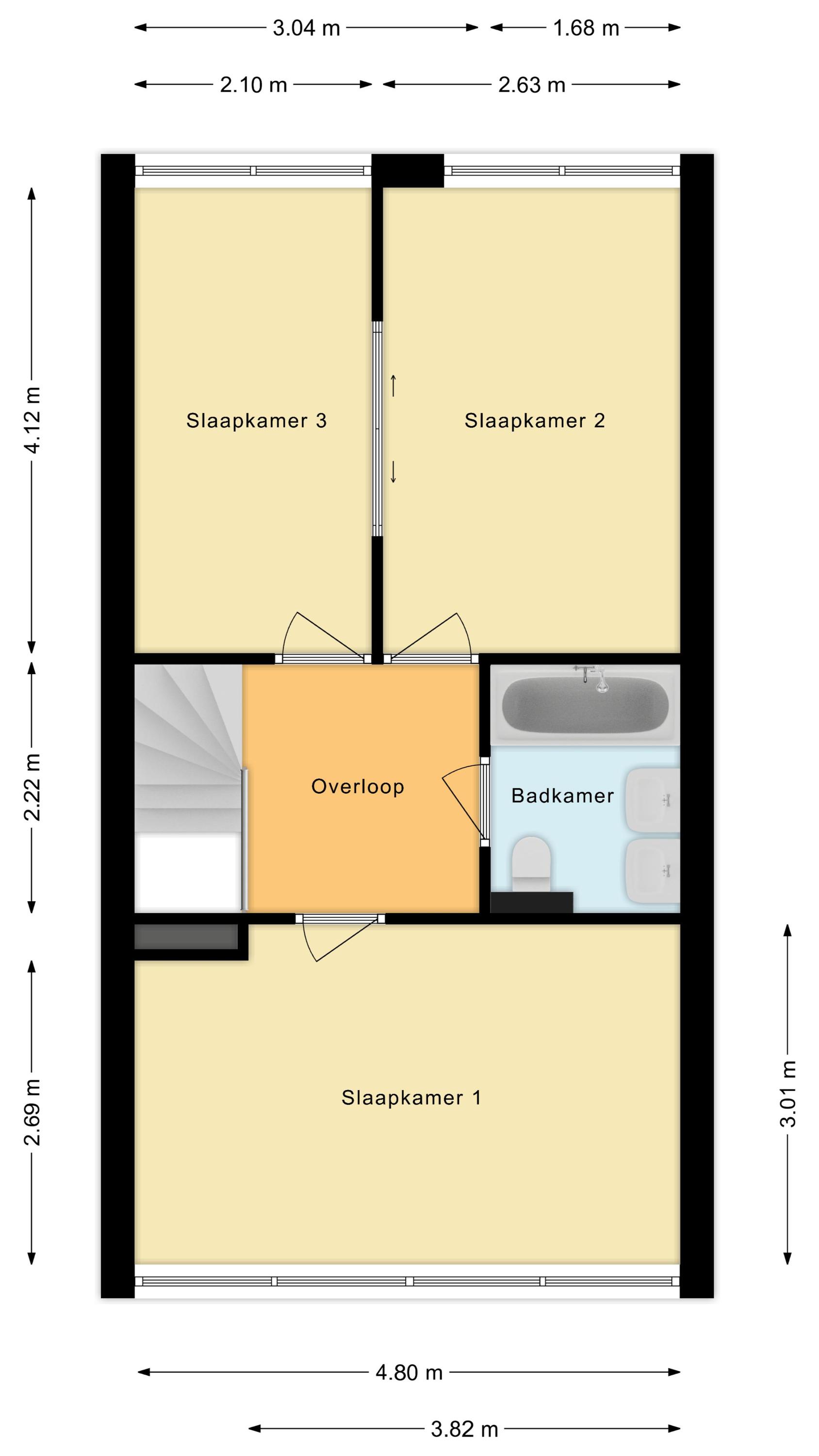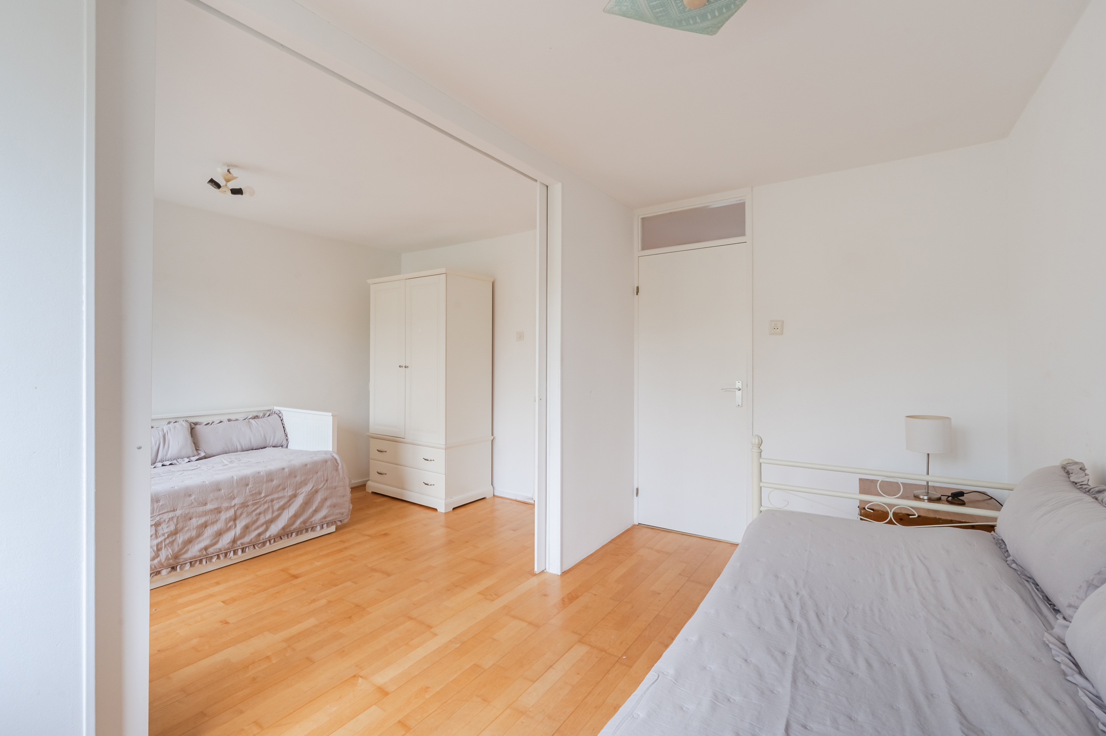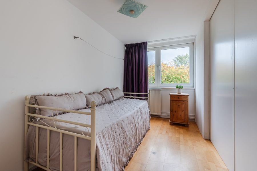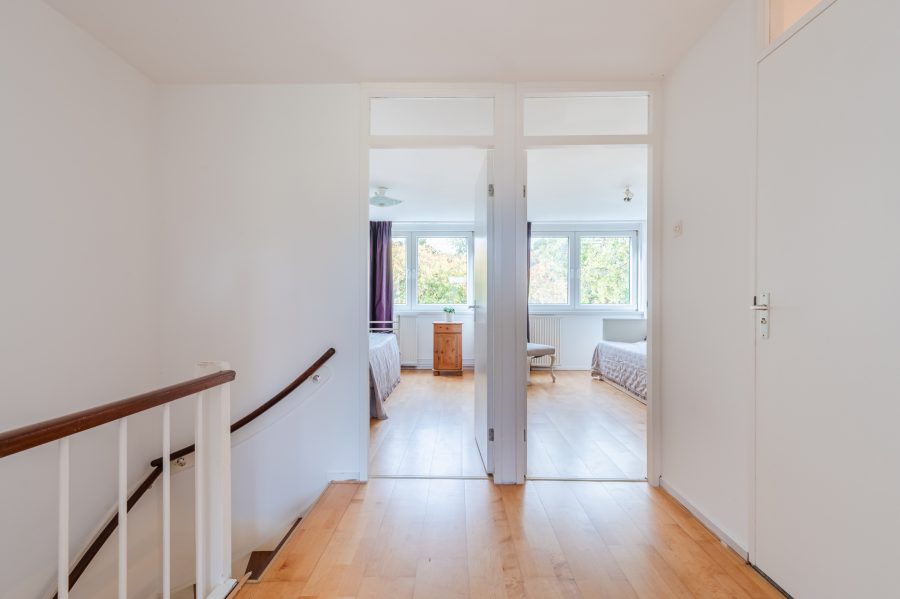 Deze verdieping telt drie slaapkamers en een badkamer. Van de drie ruime slaapkamers liggen er twee aan de achterzijde en één aan de voorzijde. De twee kamers aan de achterzijde worden van elkaar gescheiden door een schuifdeur. Alle kamers zijn netjes afgewerkt en genieten van veel daglicht.