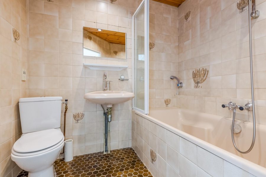De eenvoudige badkamer is via de overloop te bereiken en beschikt over een ligbad/douche en wastafel.