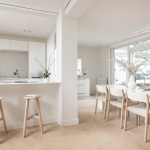 De gesloten keuken heeft een volledig wit design en is uitgerust met Siemens inbouwapparatuur: vaatwasser, afzuigkap, oven en magnetron. Via de keuken of woonkamer loop je de bijkeuken binnen. Hier is een extra keukenblok geplaatst en vind je genoeg ruimte om spullen op te bergen. De bijkeuken heeft een openslaande deur naar de achtertuin.