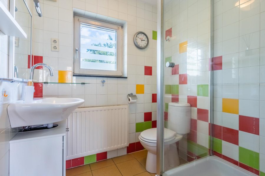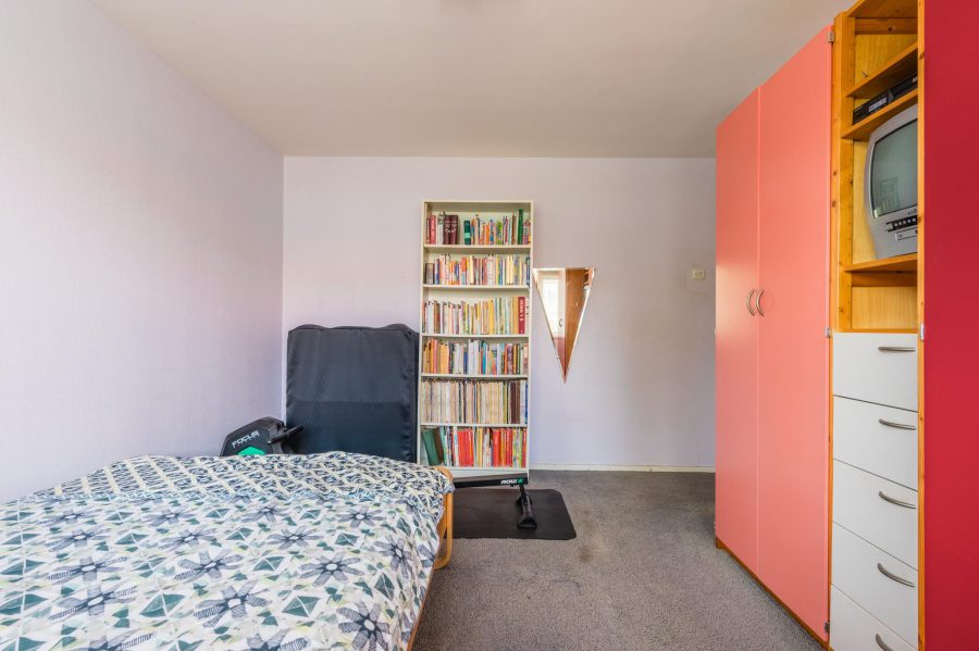Via de trap bereik je de overloop van deze verdieping. Hier tref je drie fijne slaapkamers aan. Twee slaapkamers liggen aan de achterzijde en de hoofdslaapkamer aan de voorzijde. Deze slaapkamer heeft toegang tot een balkon met vrij uitzicht. Ook de tweede badkamer is hier te vinden. Deze badkamer is voorzien van een badmeubel met wastafel en spiegel, een staand toilet en een douchecabine.