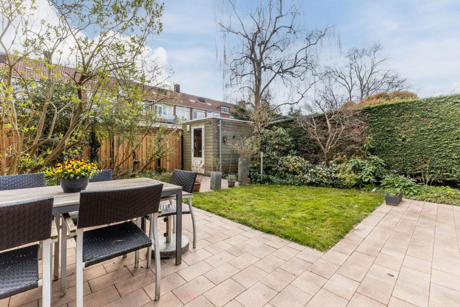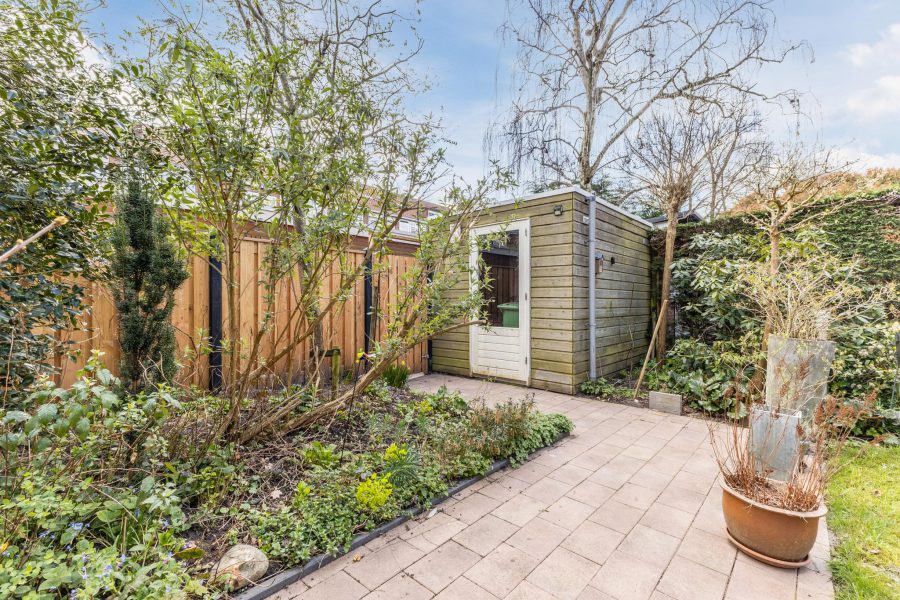Garden: The house has a mature front garden with established plants and trees. You have privacy here. The spacious back garden is partly green and partly paved. The garden has a new terrace (2023), green borders and hedge, a small lawn, and a wooden shed. There is plenty of space to create a nice lounge area and/or place a table outside to enjoy meals in the summer months. It is a wonderful, safe play area for children. There is also a side access.