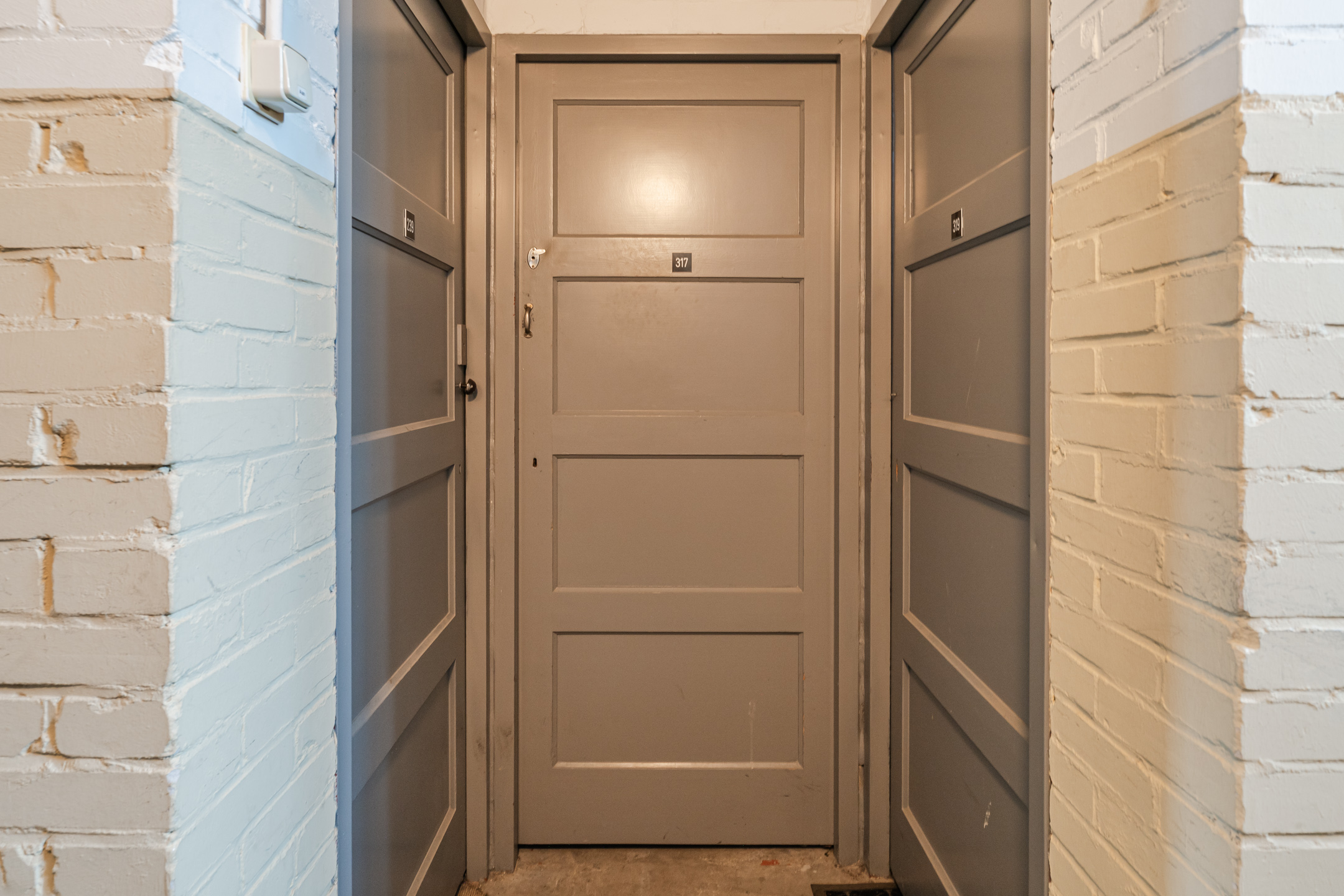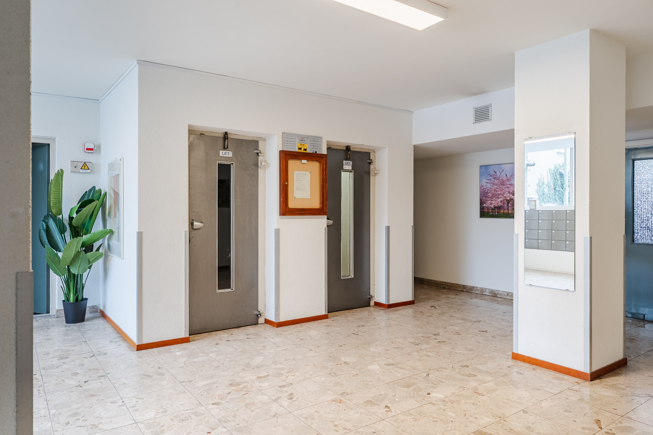 Central entrance. Communal hall with staircase and elevator.
