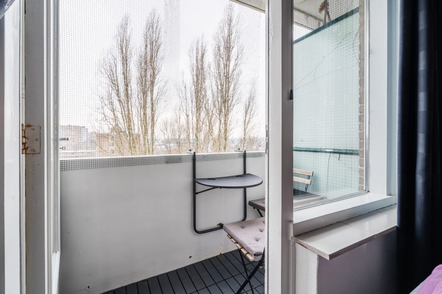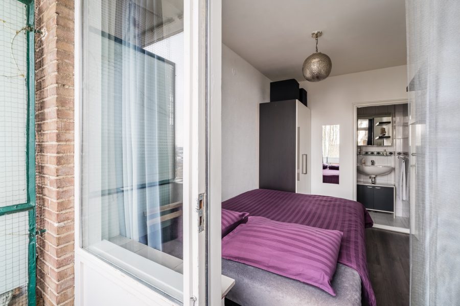 Through the bedroom you can also reach the balcony. The balcony is covered and offers space for small furniture. A nice place to enjoy the good weather in peace!