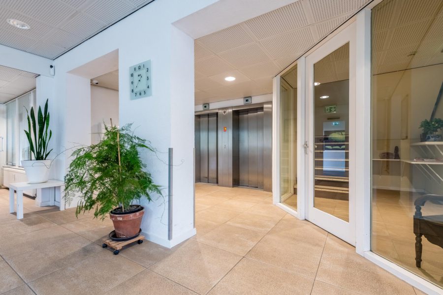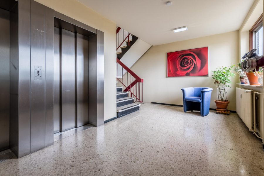Goed onderhouden entree met gemeenschappelijke hal, trappenhuis en liften.