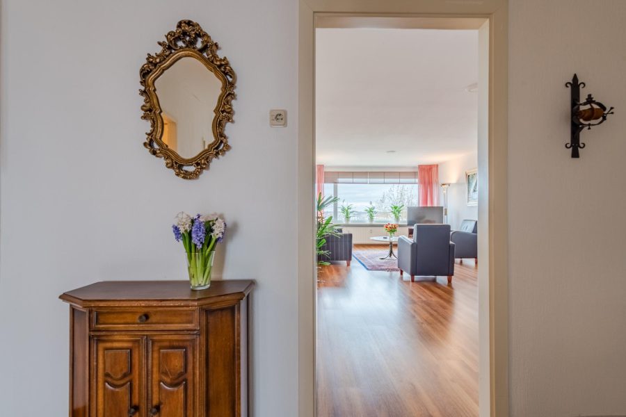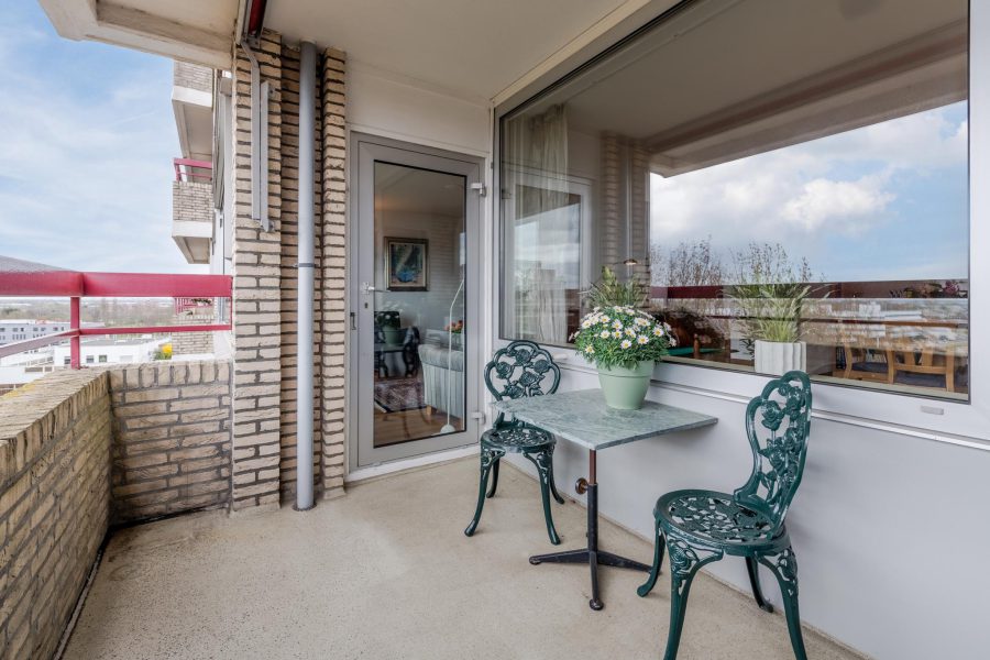 The apartment will be allocated to a resident aged 50 or older, after approval. Both the apartment (built in 1974) and the complex are well-maintained. The apartment is situated on the 9th floor and is accessible via a lift and a closed gallery. From the spacious covered south-facing balcony, you have a beautiful unobstructed view of the surrounding area. The apartment is also energy-efficient, with an energy label A. The conveniently located complex is easily accessible by both car and public transport. A spacious (free) parking space and a bus stop are located directly next to the main entrance. Additionally, a large supermarket is within walking distance.
