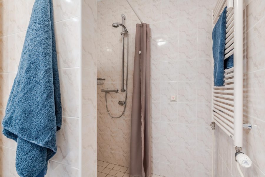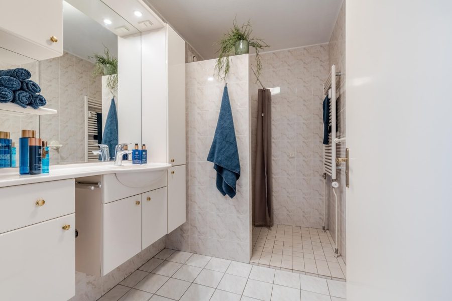 • Ruime badkamer voorzien van inloopdouche, wastafelmeubel en witgoedaansluitingen