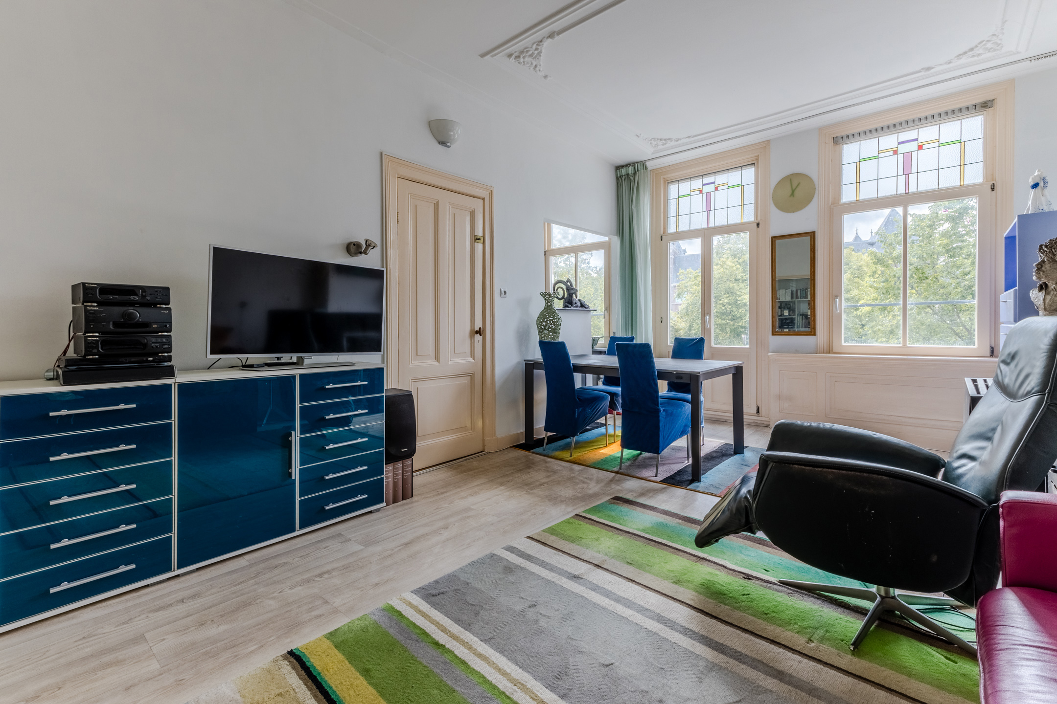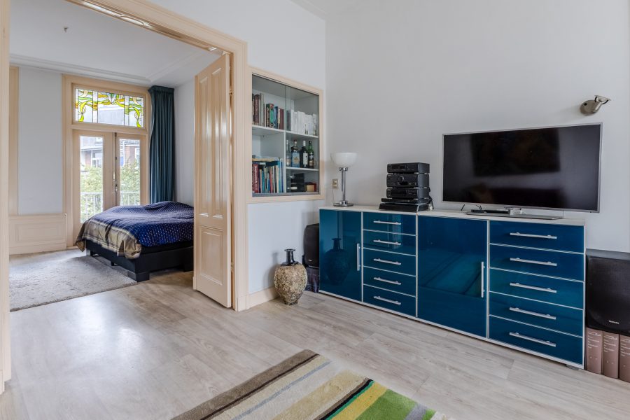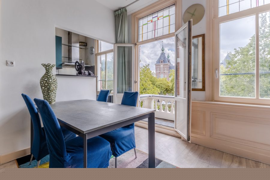A spacious, bright and characteristic apartment on private land in the popular Plantagebuurt neighborhood! The view alone is reason enough to fall in love with this apartment, as it overlooks the beautiful Singel canal. Authentic details such as an ornamental ceiling and stained-glass windows have been preserved here. At the same time, there are plenty of opportunities to modernize it to your own taste.
