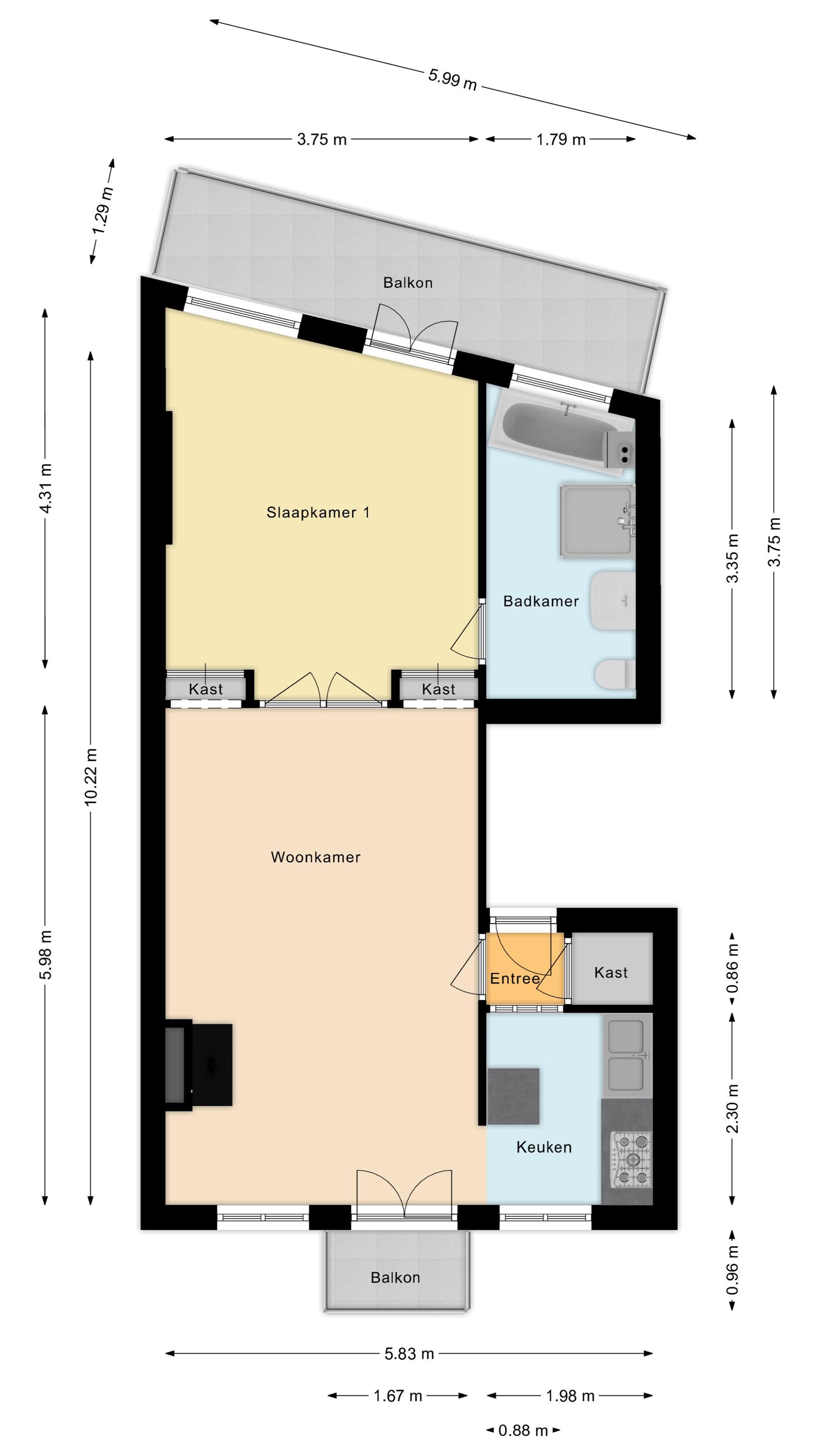 Indeling van het appartement: