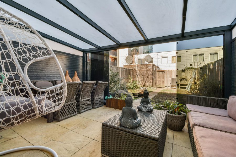 In the deep backyard you can always enjoy the sun and if you prefer to sit outside but more covered, the veranda offers that option.