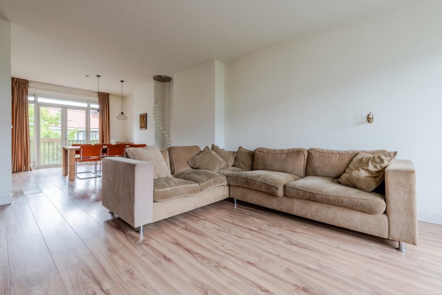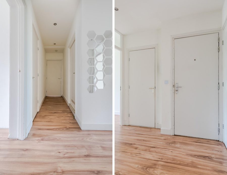 • In het gehele appartement ligt een drempelloze laminaatvloer