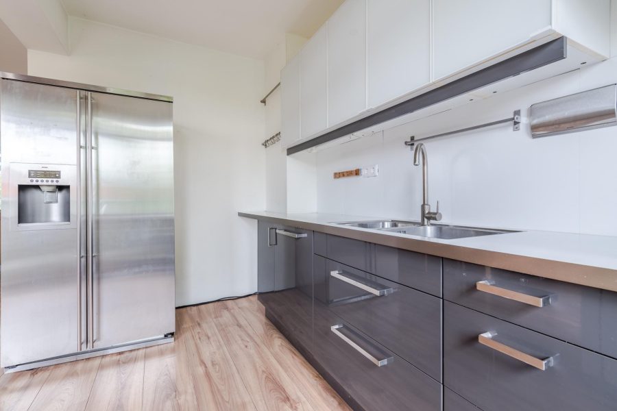 • Keurige rechte keuken met inbouwapparatuur en Amerikaanse koelkast