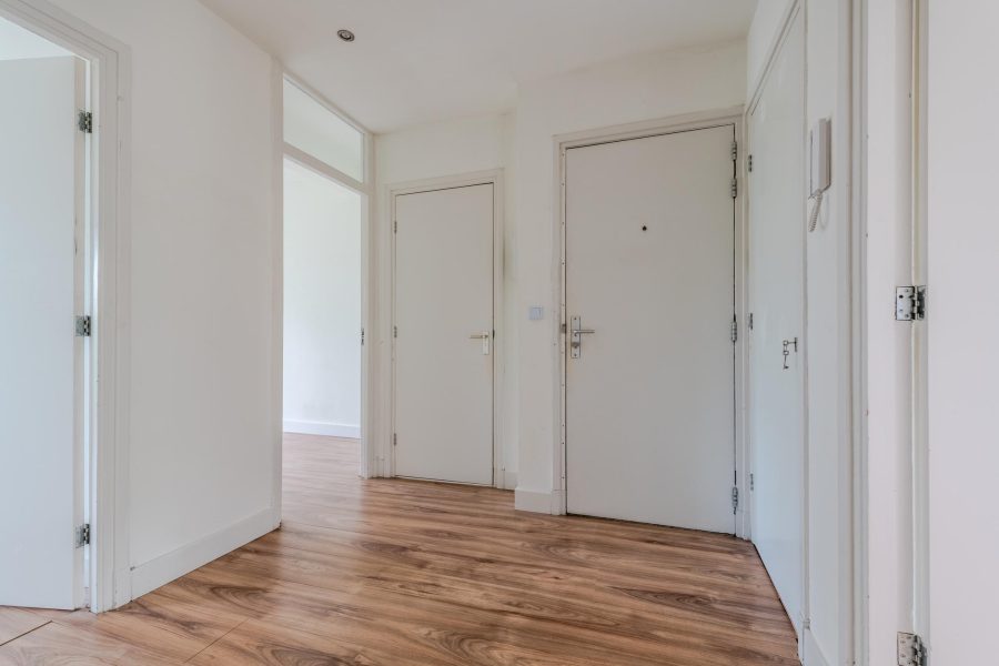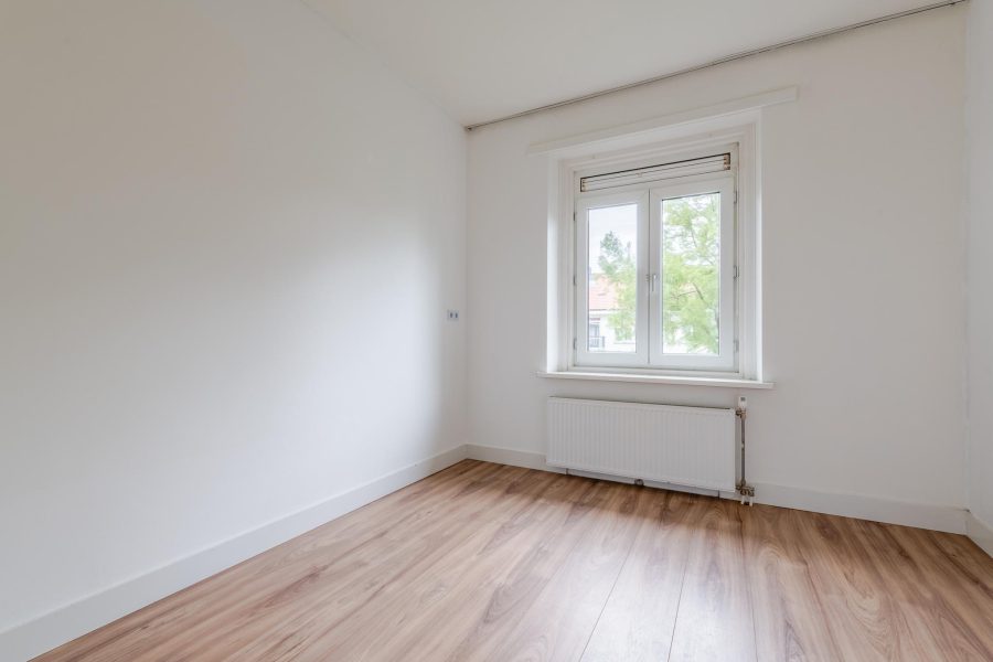 Ruime entree met direct aan je rechterhand het zwevende toilet en toegang tot twee slaapkamers. De grootste slaapkamer heeft vaste kasten en toegang tot het balkon aan de voorzijde. Je hebt hier een vrij uitzicht. Centraal op de verdieping ligt de eigentijdse badkamer. De badkamer is voorzien van een badmeubel met spiegel, een designradiator, een hoge bergkast en luxe douchecabine. De badkamer is voorzien van inbouwspots. Aan je linkerhand tref je de derde slaapkamer aan en aan het eind van de gang de diepe, lichte woonkamer met open keuken.