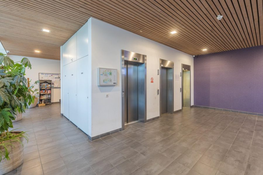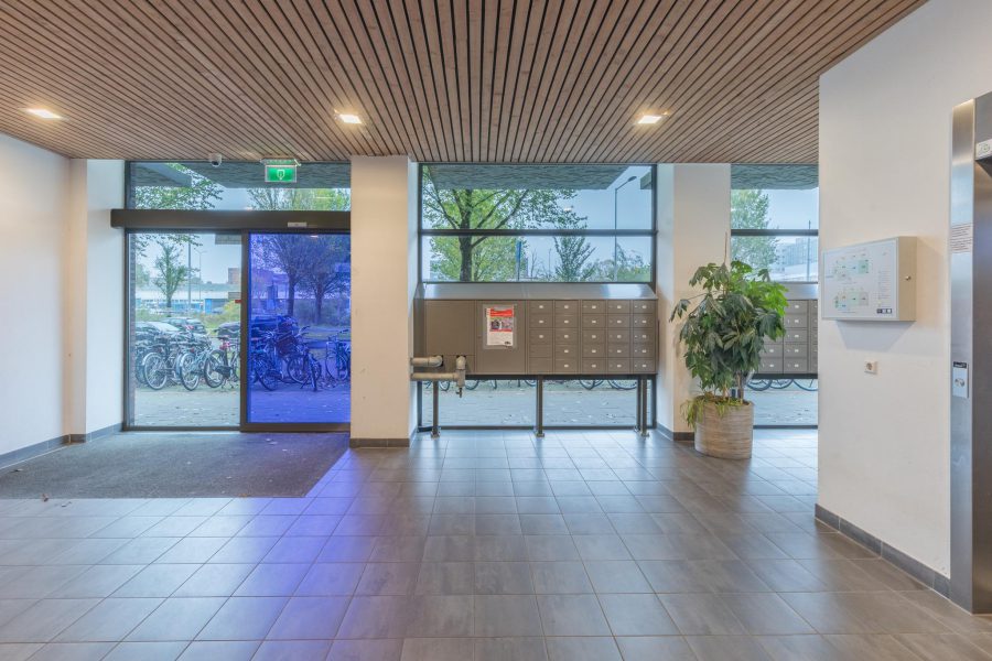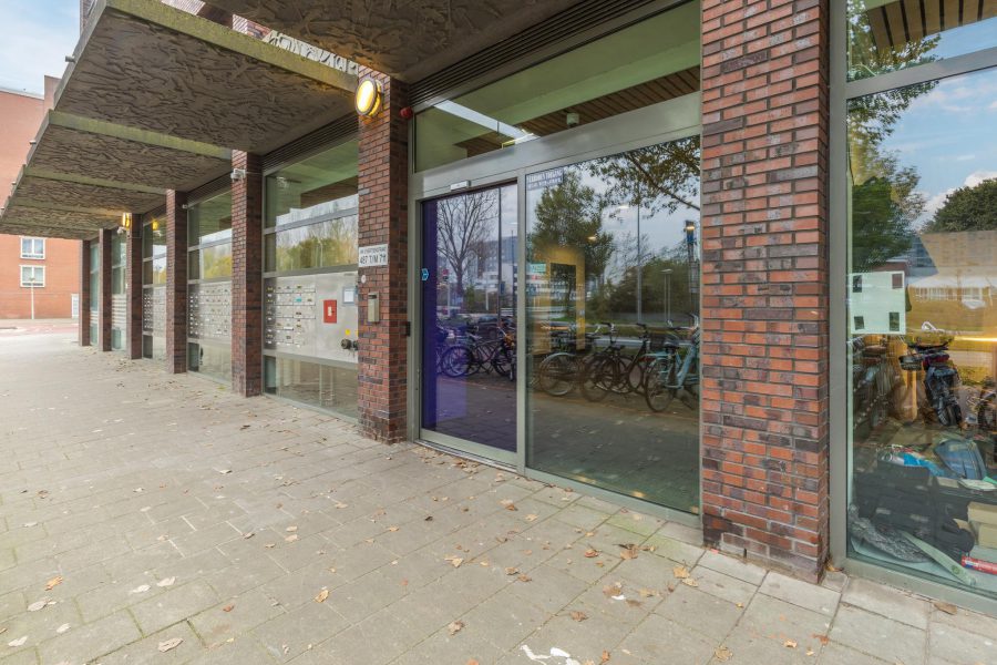 Gesloten, overkapte entree met bel en intercom. Keurig onderhouden gezamenlijke hal met liften.
