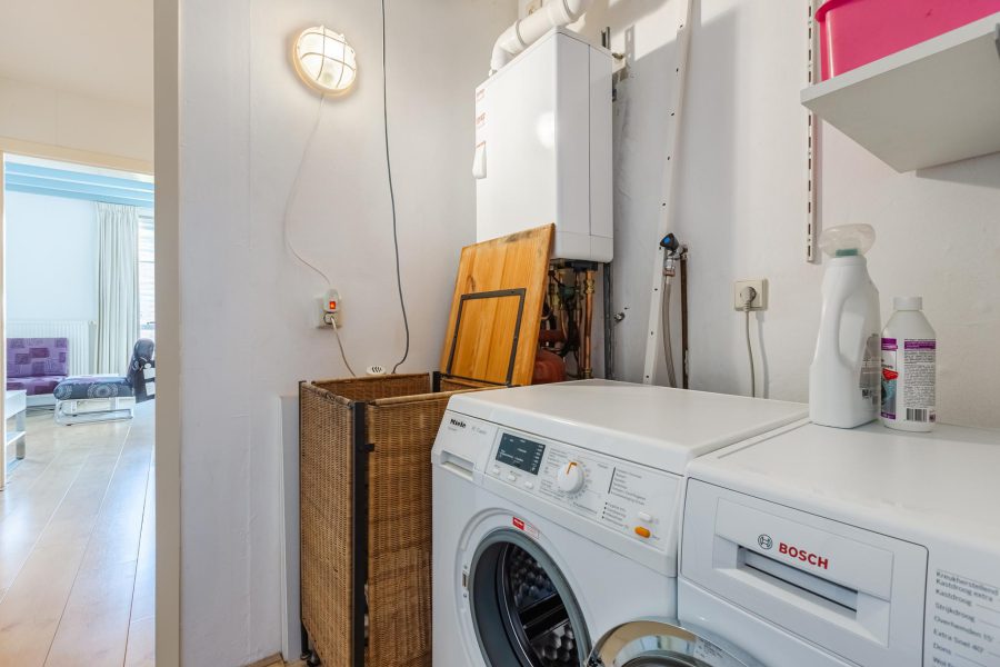 The property has a sunny, tiled and sheltered back garden. You will also find green accents here. There is a tree, a pergola and a flower box with perennials. You can create a nice lounge area here and eat outside in the summer months. The garden has an outdoor tap. At the back of the garden is a wooden (bicycle) shed with electricity and there is a back entrance.