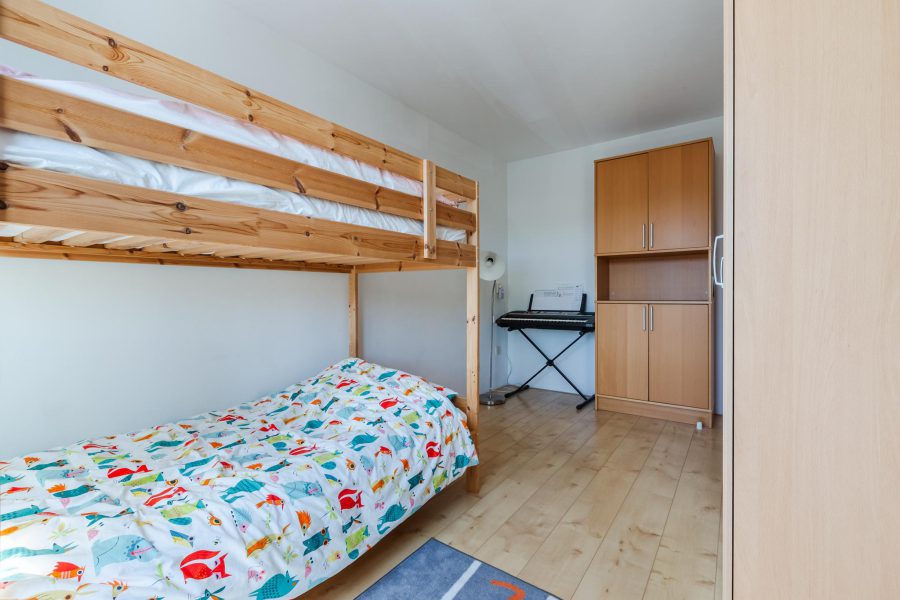 Via the open staircase, this floor can be reached. Here you will find bedrooms number three and four and an enclosed storage room with the connection for washer and dryer and the technical installation. All bedrooms have lovely light and nicely finished ceilings, walls and floors.