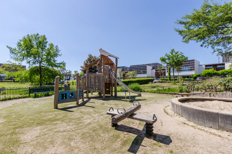 This family home (1998) is located on a quiet road in the child-friendly De Aker neighbourhood. You live at cycling distance from the bustling city centre and at walking distance from the supermarket. Childcare and schools are within walking or short cycling distance. Various sports facilities are easily accessible by bike. The bus stop is within walking distance, while the railway station is within cycling distance. By car, the A10 ring road, with connections to motorways to all parts of the country, is easily accessible.