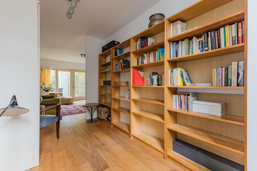 Back in the hall, you find the stairs to the basement. Here you will find a spacious storage room and a second living room. This room can also be used for other purposes, such as office/study/hobby/bedroom. This room features French doors to the garden.