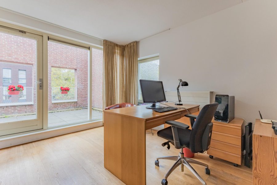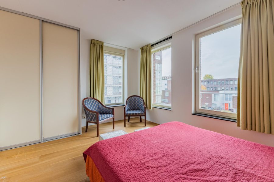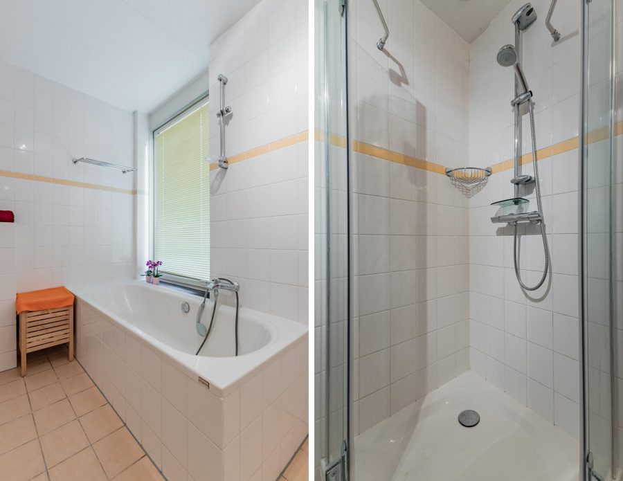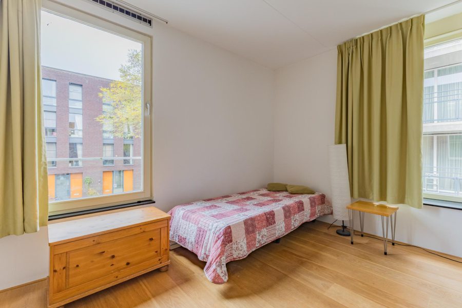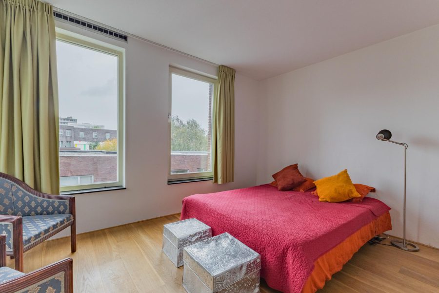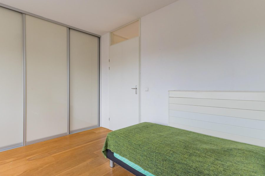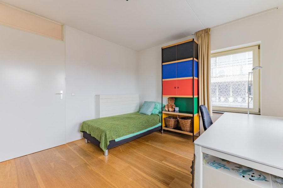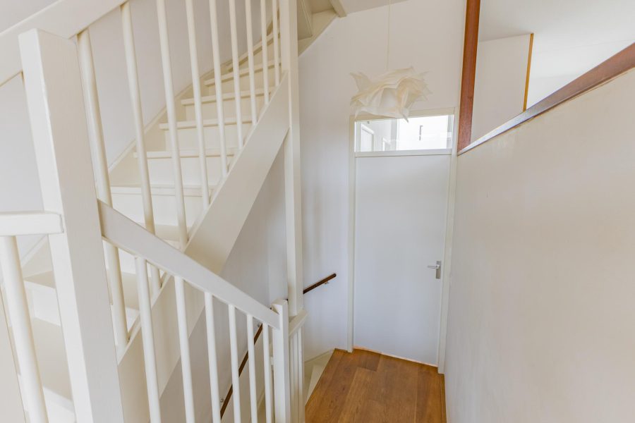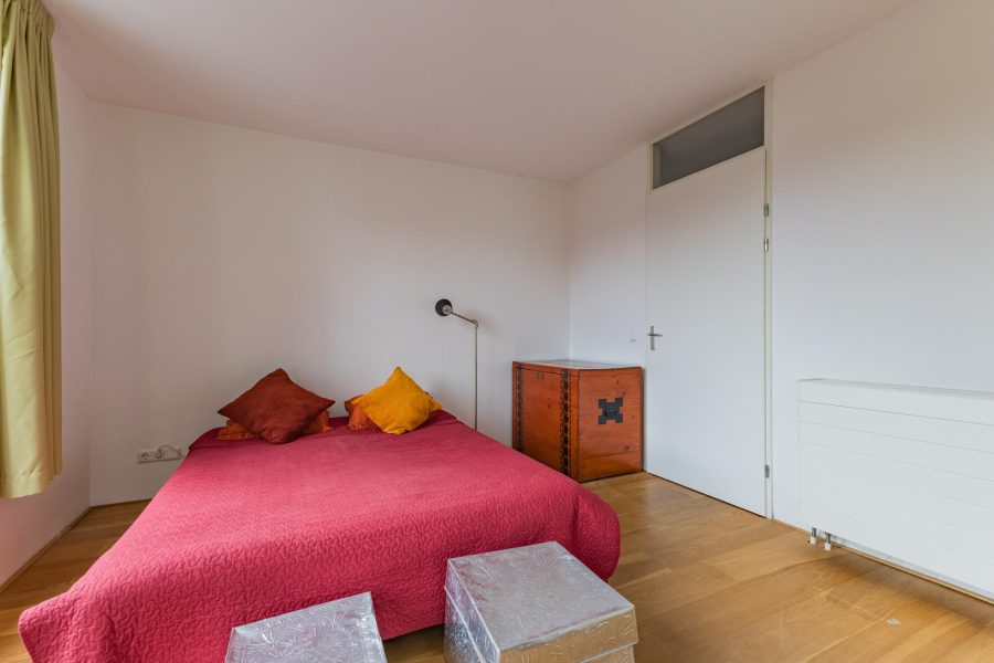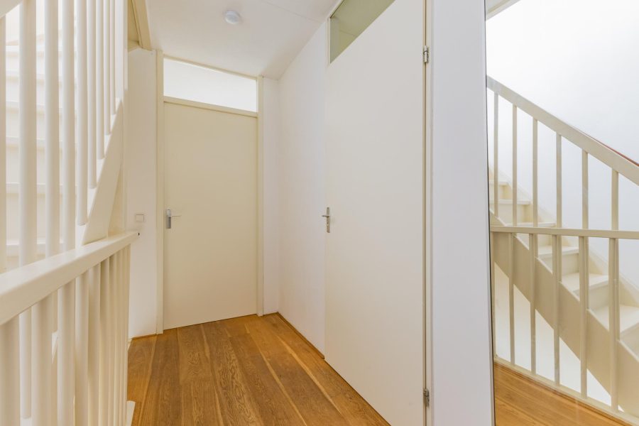 Via the stairs you reach the landing of this floor. Here you will find two spacious bedrooms and the bathroom. One bedroom is located at the rear and the second bedroom at the front. The bathroom is centrally located on the floor. In the bathroom, you will find a corner shower cabin, a floating toilet, a washbasin and mirror and a bathtub. The bedrooms have lovely light and there are also wooden floorboards.