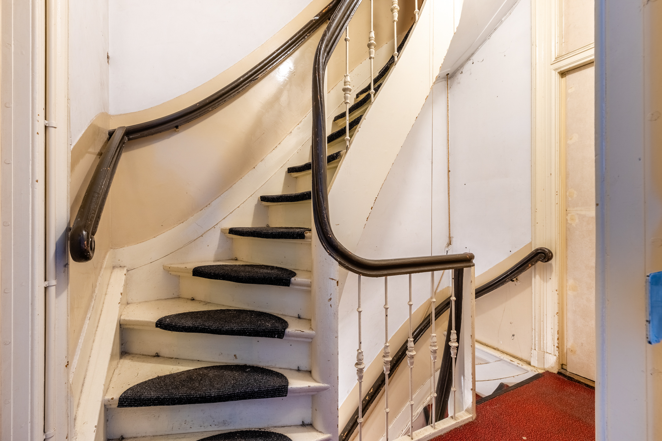Through the covered, attractive authentic front door we reach the communal staircase (in use by 2 floors).